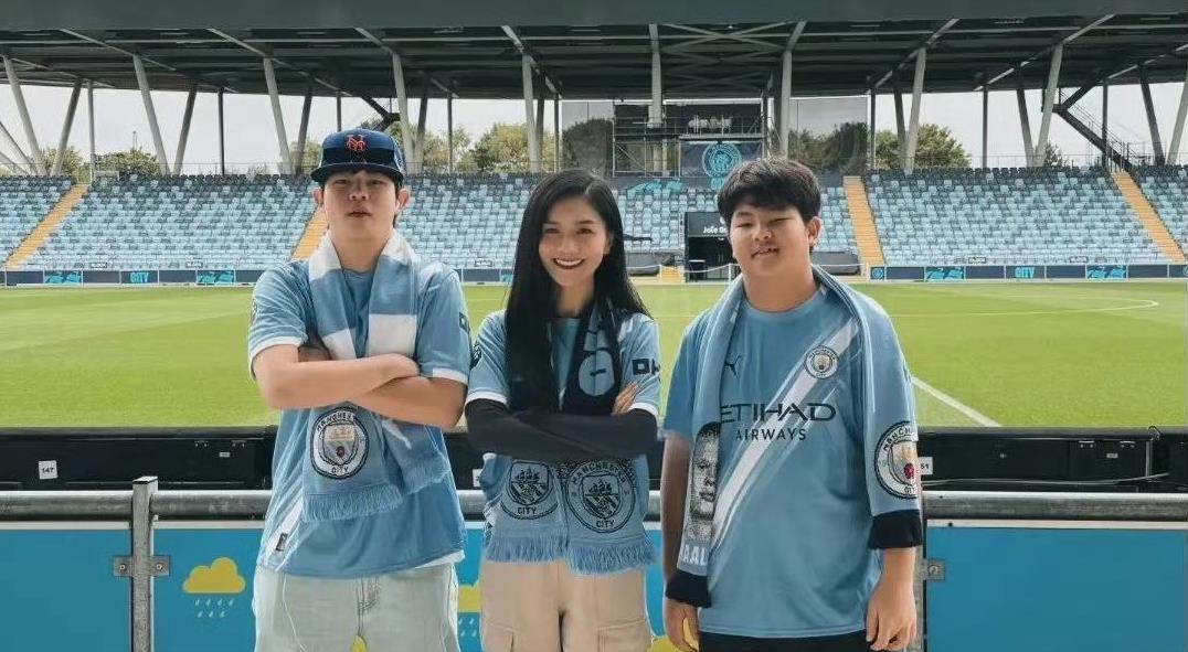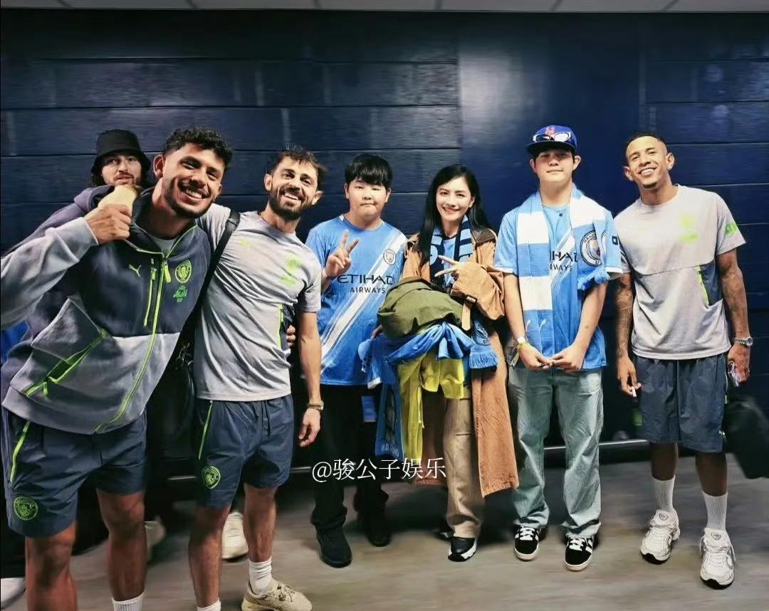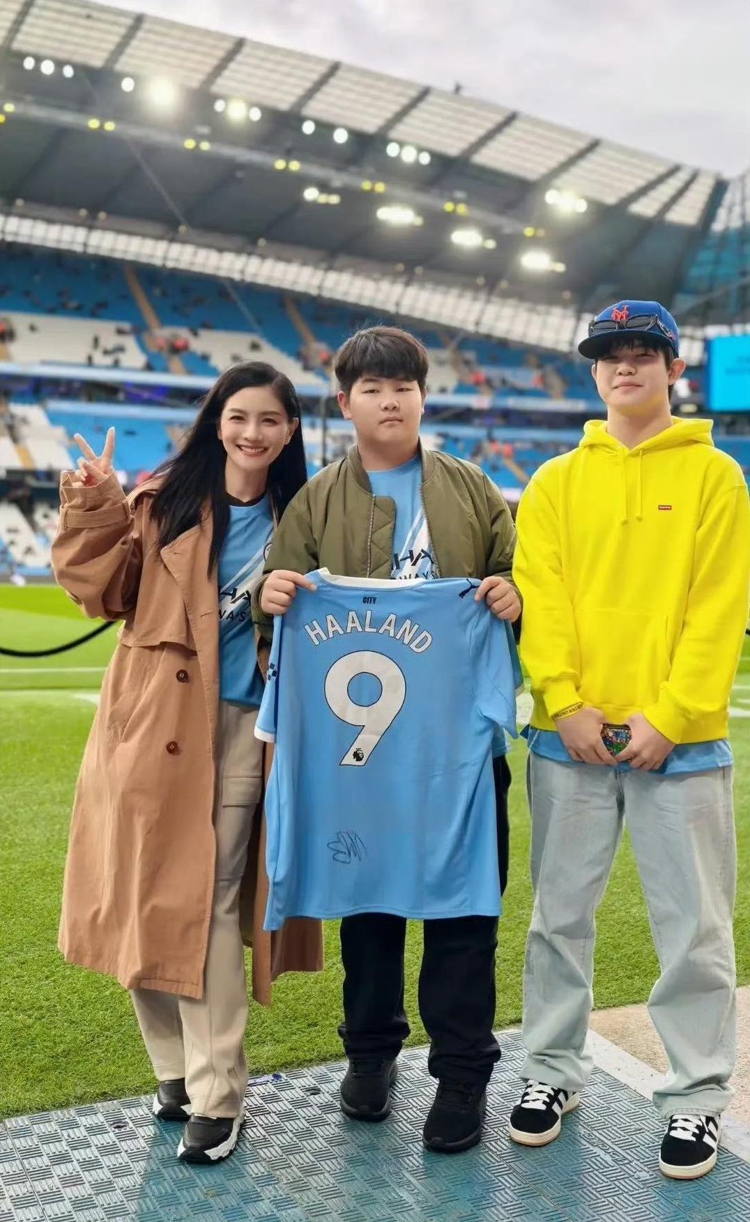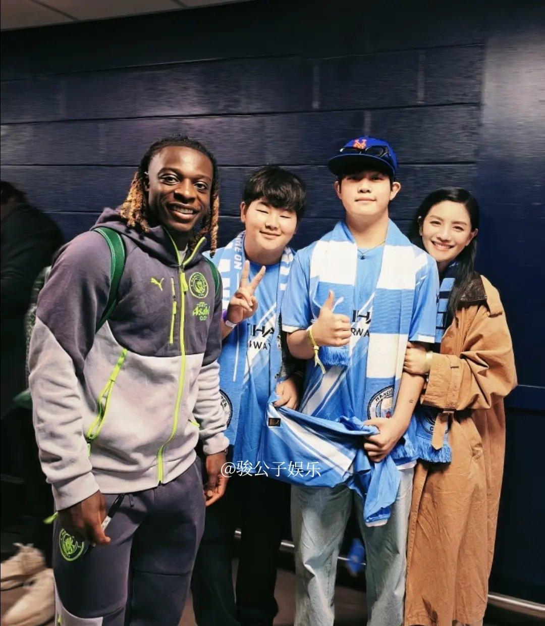 胡可带着安吉和小鱼儿一同出席德比之夜活动,母子三人都身着曼城球衣,不过沙溢此次并