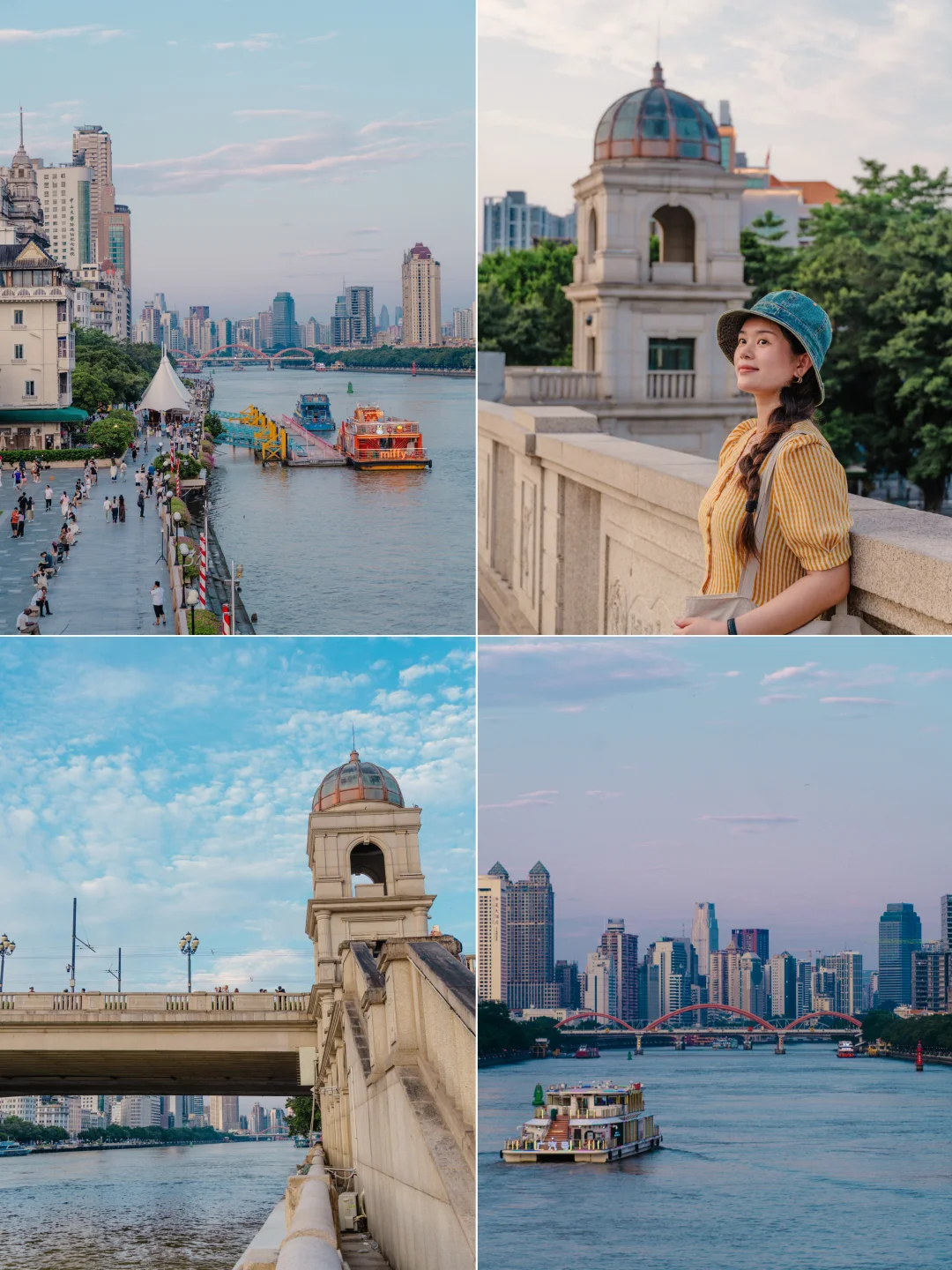 🔹沿江西路,跟沙面相邻,江边是复古的建筑群,像粤海关、南方大厦、爱群大厦等等,可以感受浓浓的岭南风情,还很适合看日落🌅