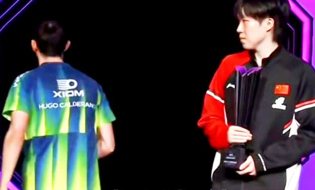 澳门赛一个颁奖,太让人意外了…… 本来竞技体育输赢很正常,乒乓球也不例外,男单决赛后冠亚军颁奖合影,一切正常进行,谁知合影后,让人不可理解的一幕发生。 王楚钦男单决赛4:0横扫了巴西雨果,两人比分【11-9,11-7,11-9,11-4】,赛后男单冠亚军颁奖合影,下一个环节应该是王楚钦自拍、然后冠军展示奖杯、再然后是男、女单冠军合影。从环节来看,应是没有雨果的安排了,按正常礼节,雨果在离开时应与王楚钦打个招呼或者握手后,转身离去。然而雨果却一扭身儿招呼不打,径自走了,留下王楚钦扭头回看雨果离去的背影,一脸懵懂无法理解。 如果此处有潜台词的话,王楚钦应问雨果:这是什么意思?这是几个意思?即使被王楚钦横扫也不要有怨气,毕竟竞技体育冠军只有一个,这次输了,下次提升技术、做好备战努力赢回来,不要把情绪代入情境,一来有损形象,二来有损格局。 老铁,您感觉呢?