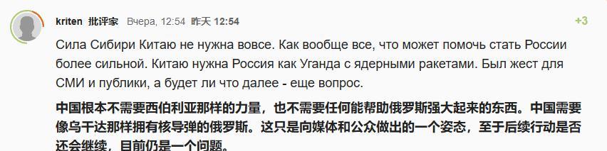 【中国要求天然气按俄国内价购买,俄网民破防:我们成了“有核武器的乌干达”?】 中