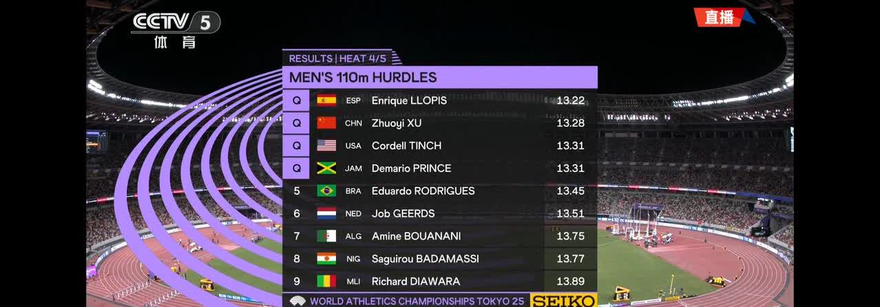 110米栏真正的骄傲来了!中国选手徐卓一以13秒28的成绩位列小组第二强势晋级半