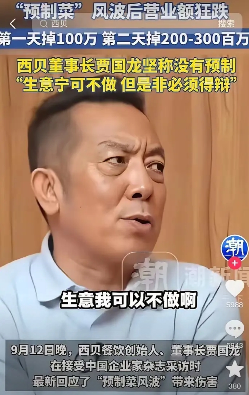 罗永浩应该是怕了? 他真不想要这个流量 现在他比谁都想赶紧结束 一个牢骚话居然弄到这般田地 给个台阶对方却没完没了 罗永浩也是怕了! 1,他也不想这件事闹的这么大 闹大了对谁都没好处 2,预制菜涉及的面太广 他见好就收可不想得罪大人物 3,西贝也算是很大的企业了 成千上万的就业岗位 罗永浩可不敢让他倒在自己面前 让这么多人失业他可不敢想 4,光脚的才不怕穿鞋的 罗永浩鞋子刚穿好也不想得罪人 估计罗永浩比谁都后悔,我发这个牢骚干嘛,我现在过的挺好,淌这浑水干嘛,应该也是出于正义吧! 这个社会很多地方就是需要改变。