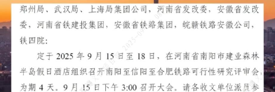 河南连接长三角地区的南信合高铁,为什么就这么难产呢? 一年一度的南信合高铁节目又开始了,这快都成了社交平台保留节目了,年年预开工,年年等,不知道的人还以为都通车了。 河南省媒体报道,2025年9月15号至9月18号,南阳至信阳至合肥铁路可研性报告研究评审会召开。 看看参加会议的单位,郑州局,武汉局,上海局,河南发改委,安徽发改委,河南铁建投集团,安徽铁路集团,皖赣铁路安徽公司,铁四院。 涉及3个铁路局,郑州局,武汉局,上海局 涉及2个省,河南省,安徽省 涉及2个铁路集团,河南铁建投集团,安徽铁路集团 涉及1个公司,1个设计单位,皖赣铁路安徽公司,铁四院。 这条铁路建成后,河南省东南部地区老百姓去往长三角地区就非常方便了,直接从合肥到南京,苏州,上海,宁波,杭州等发达城市,不用再绕圈子,省时省力省钱。 希望这条对豫东南地区老百姓非常重要的铁路能早日开工,早日通车。#信合高铁# #高铁布局矛盾#