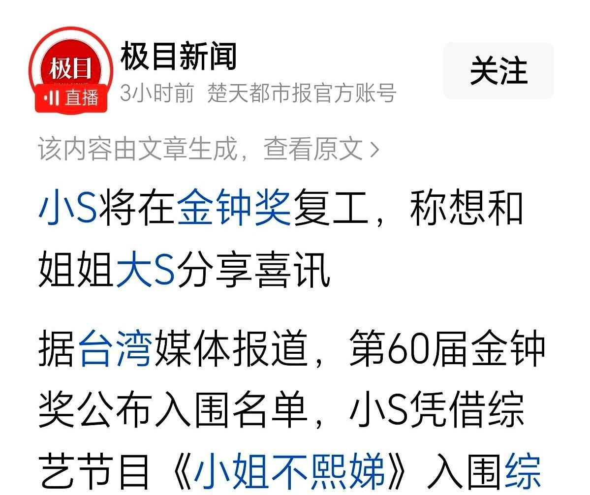 “打电话告诉大S”——一句入围感言把综艺奖瞬间拉成悼亡仪式。 镜头还没亮,情绪已先登顶。 10月17日金钟红毯,小S将用《小姐不熙娣》第一次公开验伤:失去姊姊的窟窿能否被掌声填平? 节目入围只占事件三成,剩下七成是大众在围观“悲伤如何变现”。 制作单位嗅得出痛点的流量:姊姊命名、妹妹落泪、定时投放怀念片段,收视曲线一路飙升。 观众买单,因为把私人悼词包装成公演,既安全又催泪;广告商买单,因为眼泪能换算成收视点。 可这套“疗愈经济”也有裂缝:孩子被屏除在葬礼照片外,墓碑不刻后代名,豪宅珠宝只活在传言里。 镜头越温情,场外越静默——家族把最锋利的部分留在阴影里,把最柔软的部分递给镜头。 当悼念成为节目环节,真实情感与内容商品之间只剩一层薄纱。 薄纱不破,观众感动;薄纱一破,消费的是死者,透支的是生者。 问题抛给屏幕前的你:如果那通电话真的接通,你愿意听大S回答“我宁可不要这个奖”吗? 留言,别只点赞。