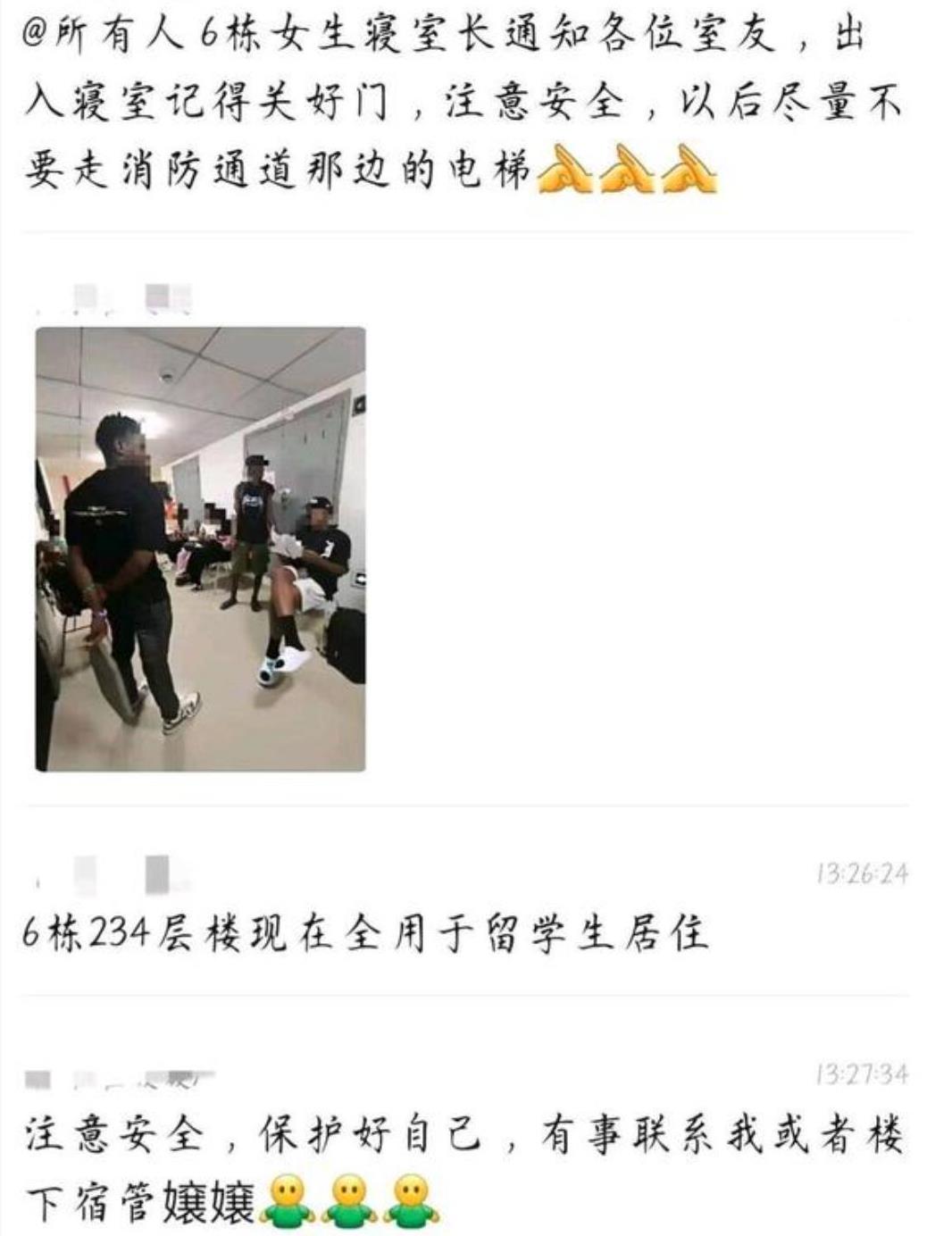 9月15日,重庆理工大学两江校区学生发帖:6栋女生宿舍楼的二、三、四层被学校安排了外国男留学生入住。宿舍楼门口挂着“女生宿舍,男生勿入”的牌子,但是大厅里有多位男留学生出现。 宿管发通知告诉女寝的学生们要锁好门,出入注意安全,尽量不要使用靠近消防通道的电梯,保护好自己。 对此,重庆理工大学的工作人员回应:这些留学生刚从国外过来,为留学生准备的16栋宿舍,因为空调等设备还没调试好,就临时安排在了女生宿舍楼的空闲寝室。学校已经做了楼层的物理分割,只不过女生们可能要和留学生暂时共用电梯和其他公共空间。16日就会全部搬走。 据悉,16日中午12:30,搬家货车抵达,工作人员协助23名留学生打包行李,来自肯尼亚的留学生约翰(化名)表示:“理解校方的临时安排,对女生造成的不便,感到很抱歉。” 截至14:00,最后一名男留学生离开了女生宿舍楼。 如果新的宿舍楼还未准备好,只是一晚过渡,可以把这些留学生安排在酒店或者男生宿舍楼、其他的空闲区域,为何非要安排进女宿舍楼?让一楼的女生都人心惶惶,担惊受怕。 这不是个例,2023年广西南宁一所高校称留学生楼的热水泵故障,安排男留学生们去女生宿舍楼的空宿舍里洗澡。这种安排不知道是咋想的? 外国留学生拿着补贴,住着条件优越的公寓,没热水就立马安排去女宿舍楼。那我们的大学生住着6人间、8人间,至今还有好多大学宿舍老旧,空调都没有,还要去公共浴室洗澡,怎么不给孩子们安排到条件好的地方过渡!