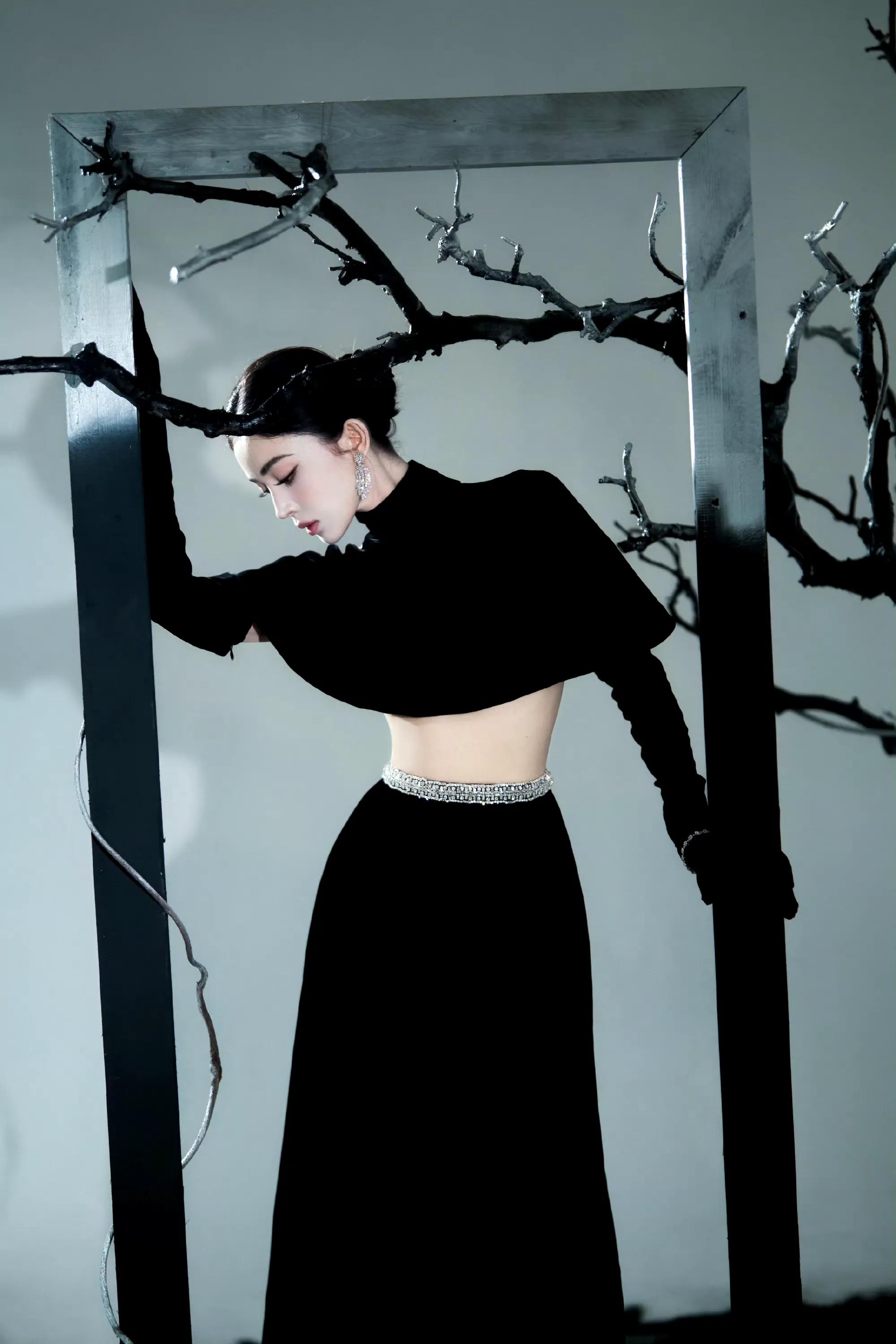 关晓彤丝绒黑裙,逆天长腿直呼救命
