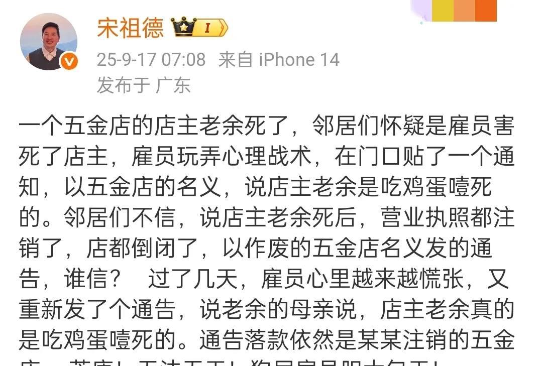 谭飞非常感慨,表示阴谋论者连警方和逝者母亲的话都不信,根子里是认为贵圈混乱而黑暗。 他觉得,一个爷不疼奶不爱的行业,会有一股势力为它遮掩什么的可能性几乎为零。 而宋祖德截然相反,虽然没有直接表达观点,却通过一个故事把该说的都说了。 其实他的态度和之前没啥不同,只不过采用了委婉的手法,只可意会不可言传而已。 这两种观点很有代表性,基本囊括了目前网友的两种主流态度。 当然,公说公有理,婆说婆有理。如果没有更权威的通告出来,或许这两种观点的碰撞会一直持续下去。