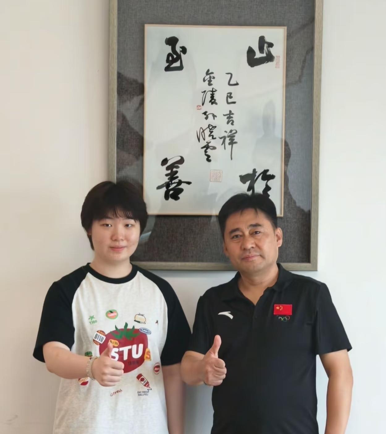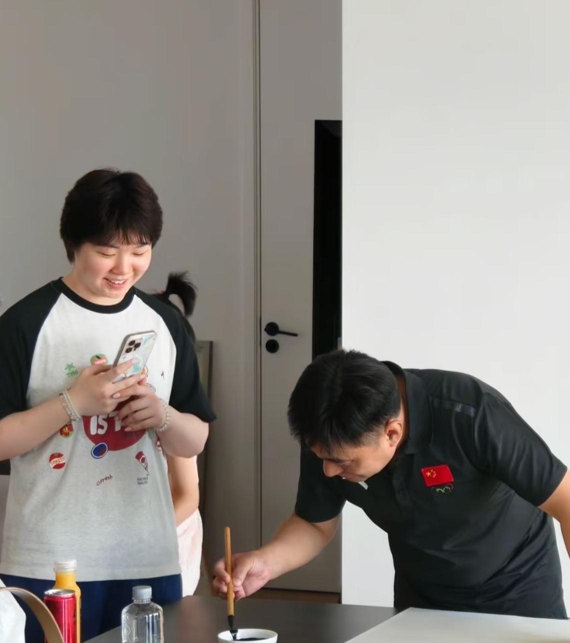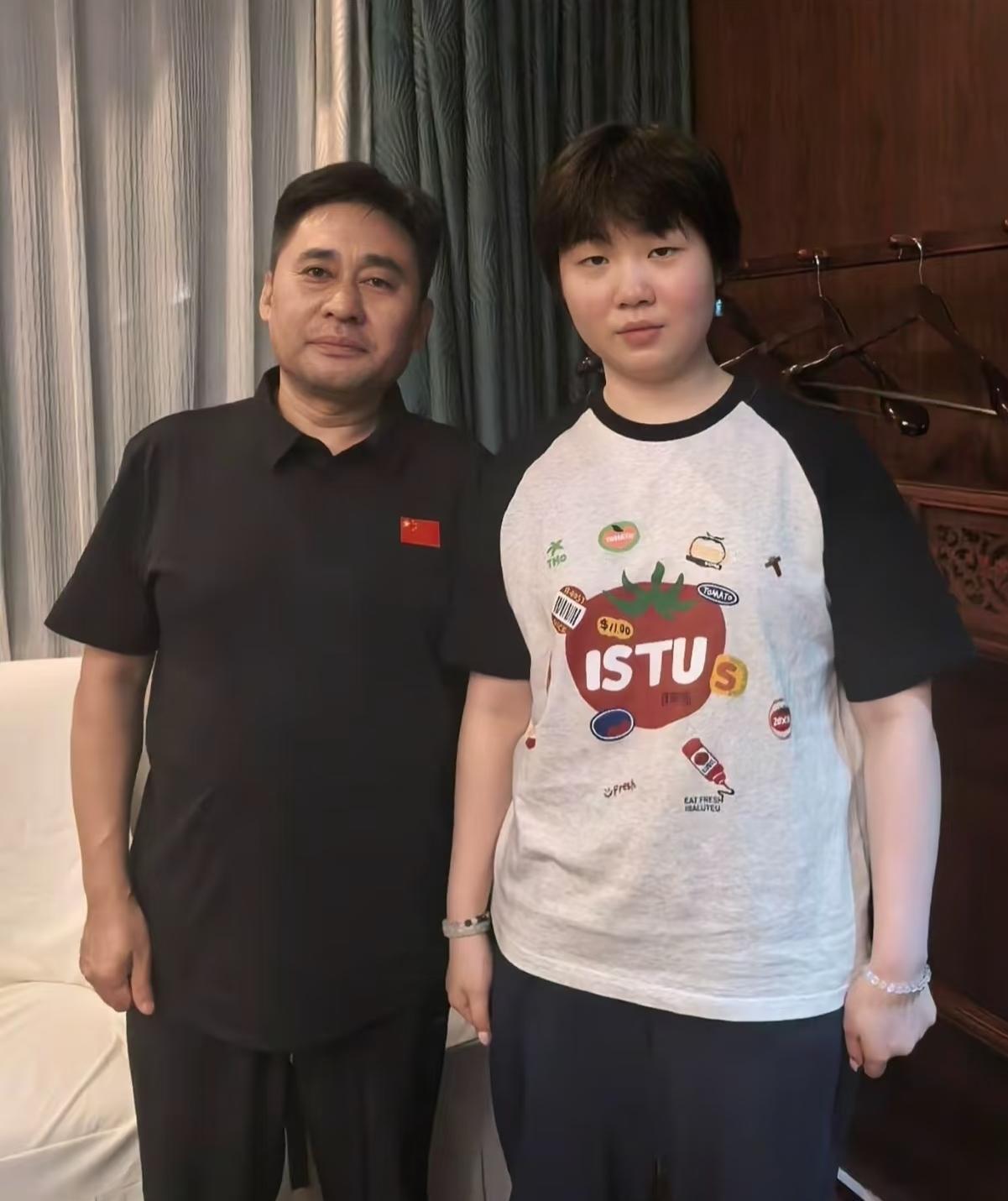 蒯曼澳门冠军赛后短暂回家乡一下,和书法家朱权相聚合影 蒯曼澳门冠军赛后回家乡不仅