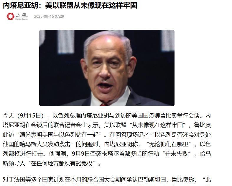 9月15日,以色列总理内塔尼亚胡和美国国务卿鲁比奥站在一起,对着镜头硬扯了一个“中国罪状”,说中国和卡塔尔砸钱搞机器人账号、用人工智能和广告操控西方媒体,“系统性黑以色列”。 9 月 15 日,内塔尼亚胡在耶路撒冷的一次会议上,当着美国国务卿鲁比奥的面,他突然把矛头指向中国和卡塔尔,声称两国投入巨资,利用机器人、人工智能和出版物等手段,向西方媒体灌输反以色列的议程,还特别强调打开手机就会被相关内容 “轰炸”,尤其是在 TikTok 平台上。 这番言论一经传出,迅速引爆舆论。要知道,中国一贯主张和平解决巴以冲突,支持 “两国方案”。就在 9 月 11 日,中国常驻联合国代表傅聪大使还在安理会紧急会议上发言,明确谴责以色列侵犯卡塔尔领土主权。如此看来,内塔尼亚胡的指责毫无道理,更像是在无理取闹。 内塔尼亚胡称中国通过 TikTok 推行 “反以议程”,这一说法实在站不住脚。TikTok 只是一款短视频平台,其算法推荐是基于用户的兴趣和行为,反映的是用户的自发行为,并非所谓的 “国家操控”。 而且,以色列自己就曾被曝出雇佣多家美国公关公司,在社交平台上大范围投放亲以内容,甚至利用 AI 技术进行反宣传,如今却倒打一耙,实在可笑。 值得注意的是,内塔尼亚胡发表这番言论的时机十分微妙。当时,阿拉伯与伊斯兰国家峰会刚刚在多哈举行,集体发声谴责以色列,以色列正处于外交压力的风口浪尖。同时,以色列国内经济低迷,外交孤立,反对派领袖拉皮德也一直在批评内塔尼亚胡的政策失败。 美国在事件中的角色耐人寻味。鲁比奥作为国务卿,选择在内塔尼亚胡访美期间公开站台,这种外交姿态与美国对中东政策的调整密切相关。2024年5月,美国宣布向以色列提供35亿美元军事援助,包括精确制导炸弹和“铁穹”防御系统升级组件。 与此同时,美国国会正推动《反以色列偏见法案》,要求社交媒体平台删除“支持巴勒斯坦”的内容。这种立法与外交的双重动作,暴露出美国试图通过控制舆论场来塑造中东叙事权的企图。 在这样的背景下,内塔尼亚胡突然将矛头指向中国,很难不让人怀疑他是想找一个 “替罪羊”,通过制造外部矛盾来转移国内民众的注意力,缓解自身所面临的压力。 然而,谎言终究是谎言,无法掩盖事实真相。内塔尼亚胡的这波操作,不仅不能解决以色列面临的实际问题,反而让其在国际社会上的形象更加尴尬。中国向来不搞宣传战,不会通过不正当手段去针对任何国家,这种无端的指责,只会让更多人看清其无理狡辩的本质。