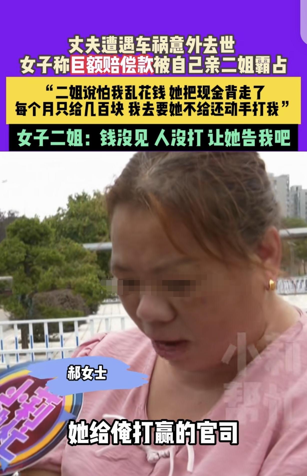 “在金钱面前,亲情啥都不是!”河南平顶山,一女子丈夫车祸去世,100多万赔偿款,竟然被亲二姐以怕她乱花钱为借口霸占,只每月给她几百零花钱,女子去要,竟被二姐用剪子扎的浑身是伤。二姐:钱没见,人没打,你去告我吧!大姐气到崩溃:气死,这钱是你的赔偿金,是你男人死了呀,也不是她男人死了呀!结局惊呆众人! 9月16日,郝女士找到小莉帮忙记者哭诉,不惜家丑外扬,因为她实在没办法了。 原来,郝女士在家排行老三,上面有两个姐姐。 本来郝女士的生活过得比上不足比下有余,夫妻恩爱,可丈夫却被一场车祸夺去生命。 为了得到应有的赔偿,二姐看郝女士太柔弱,就挺身而出,帮她打赢官司,拿到了100多万赔偿。 郝女士感激不尽,她走不出丧夫之痛,又性格软弱,如果不是二姐鼎力相助,她不可能顺利拿到赔偿。 可万万没想到,二姐竟然没把赔偿金给她,反而自己背走了,理由是,她怕郝女士乱花钱,一冲动把100多万全败光,以后的生活无以为继,每月给郝女士几百零花,其他的由她保管。 郝女士心里很是不情愿,在她看来,自己又不是小孩子了,丈夫拿命换来的钱,她咋可能大手大脚,何况家里上有老下有小,二姐这也太大包大揽了。 可毕竟,这赔偿金是二姐帮着打官司得来的,而且,她们是一奶同胞,她很信任二姐,虽然钱帛动人心,但自己二姐不会把妹夫用命换来的钱据为己有,做出丧尽天良的事来。 可二姐每月只给几百元根本不够花,郝女士实在忍不住了,就去找二姐要,二姐不但不给,还把郝女士打的浑身是伤。 这时,郝女士终于意识到不对劲了,把母亲和大姐找来为自己撑腰,可二姐原形毕露,谁出面都不好使,一口咬定她没见到钱,字是郝女士签的,钱也是她拿的。 郝女士斩钉截铁的说,她没签字,都是二姐一手操办的,签的啥字?让她拿出来看看再说。 二姐却跟记者说:让她去法院瞅签字去,而且,郝女士身上的伤,二姐也说是郝女士自己绊倒摔得,不是自己打的。 大姐听了气坏了,大骂郝女士脑子是浆糊,否则不可能被亲二姐骗,还对着话筒怒斥二妹:你不心虚出来面对面把事说清楚,别藏在老鼠洞里。 二姐也不甘示弱,怒怼大姐:你才是老鼠,你给我想死哪儿死哪儿去… 老母亲看着姐仨吵成一团,也崩溃了,大骂二女儿没人性:那是人家用命换来的钱呀,你太丧良心了! 记者实在听不下去了,她做二姐的思想工作,她们是亲姐妹,身体里流着一样的血,何必闹得这么不堪? 二姐却叫嚣,让郝女士去告她,法院说她拿了郝女士一个亿,她就还一个亿。 司法人员给郝女士支招,让她收集证据,哪一年几月几日,多少钱,在哪里给她二姐的? 看来,郝女士只能撕裂亲情,跟她二姐对簿公堂了。 金钱面前,亲情竟如此脆弱!二姐霸占赔偿款还打伤妹妹,实在令人心寒。 法律是维护公平正义的利器,郝女士应果断收集证据,通过法律途径讨回公道,让贪婪者付出代价,也警示世人莫让金钱玷污了亲情。 《民法典》第985条规定:得利人没有法律根据取得不当利益的,受损失的人可以请求得利人返还取得的利益,但是有下列情形之一的除外:(一)为履行道德义务进行的给付;(二)债务到期之前的清偿;(三)明知无给付义务而进行的债务清偿。 郝女士丈夫因车祸去世获得的100多万赔偿款,这笔赔偿款的合法受益人是郝女士及其家属。 二姐以怕郝女士乱花钱为由将赔偿款霸占,自己取得了这笔款项的占有和使用,而二姐并没有法律依据来占有这笔赔偿款。郝女士作为受损失的人,有权要求二姐返还这笔不当取得的利益。 二姐没有法律根据占有赔偿款的行为构成不当得利。郝女士可以向二姐主张返还该赔偿款。这体现了法律对合法财产权益的保护,避免他人通过不正当手段获取他人财产。 在这种情况下,二姐不能以任何不合理的理由拒绝返还,除非存在法律规定的除外情形,但本案中并不存在这些除外情形。 二姐对郝女士实施殴打并致其受伤,其行为已经触犯了治安管理处罚法。公安机关可以根据该条法律规定,对二姐进行相应的处罚。 郝女士可以向公安机关报案,要求对二姐的违法行为进行处理,以维护自己的人身权益。 对此,你怎么看? 关注@灋律盐究员 学法辩是非,用法止纷争。 信源:小莉帮忙2025-9-16