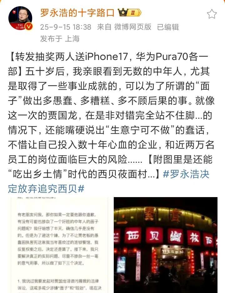 罗永浩缺德事没少做,但是西贝这事确实功德无量,即使你以前非常讨厌他,这次也无法不