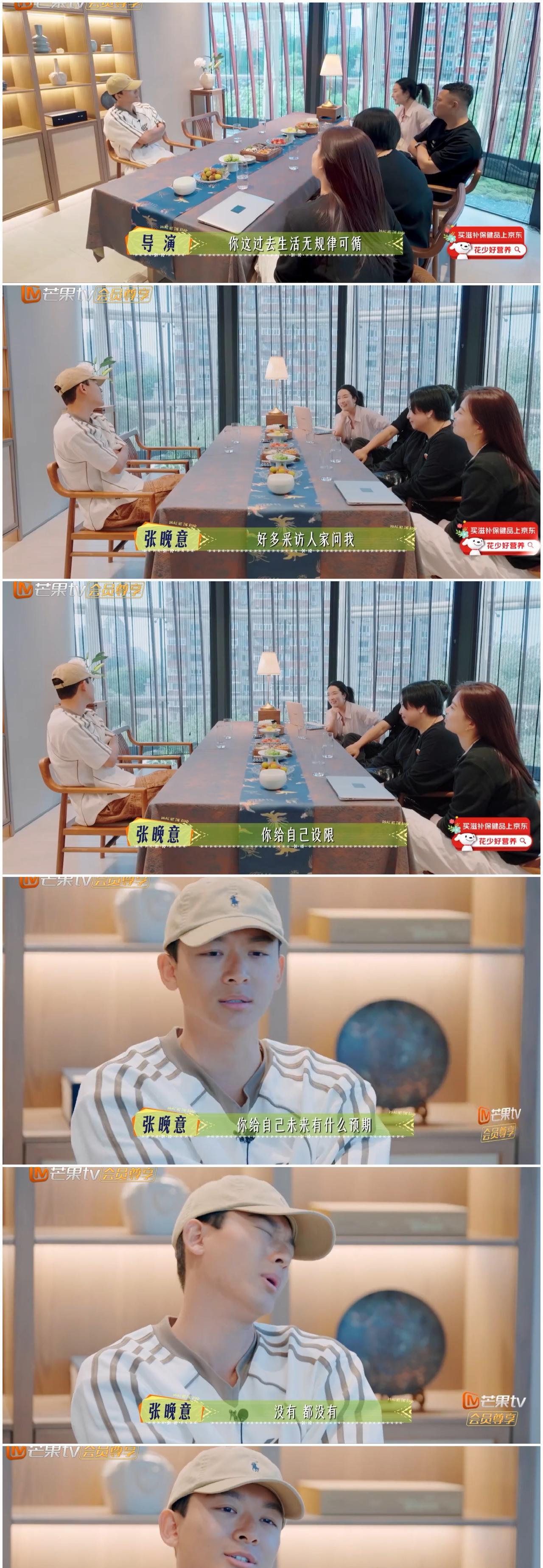 张晚意被路人洒落了一身水, 他拍拍身上的水, 当作什么都没有发生就走开, 或者他会跟路人理论。 这是他会跟陌生路人遇到事情的处理方式, 但是当他初到到花少团队里, 大家都很陌生, 他会选择愉快相处, 不会一上来就吵吵。 在生活里, 他就是一个快乐与随意的人。 曾经有人采访他, 想知道他是否给自己设限, 对于未来有何规划与预期。 他的答案是---都没有。 张晚意的人生格言就是“尽人事,听天命”。 遇到什么角色就接,努力做好, 最后这个角色反响如何, 他都不会太在意, 什么都可以接受。 哎呀, 他的人生状态与他做旅游风格都是一样的, 随意与自由。 是呀, 他就那种“老天爷追着喂饭吃”的人, 他出道以来的各个角色都很出圈。 但是我认真一想, 张晚意是身在娱乐圈这个名利场 的一股清流, 他不抱任何期望, 只顾埋头苦干, 至于结果如何 就交给老天安排了。 结果老天爷就是偏爱张晚意这个努力的小伙子, 给他的,都是好牌。 就算老天爷给他的是一手烂牌,