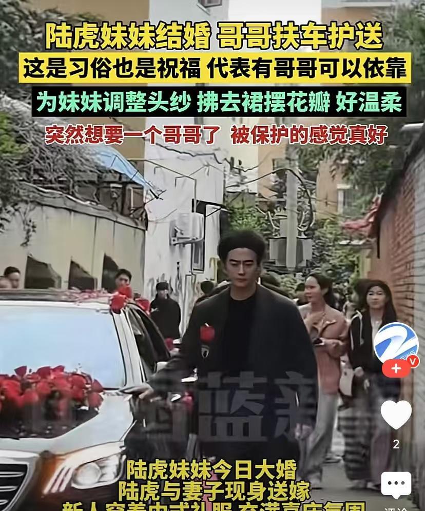 陆虎妹妹大婚现场曝光! 婚礼是在陆虎的老家举办,现场拉了一车礼炮,估计嘘嘘和陆虎也是头一次见,两人打着伞一路碰走赶去看热闹,由于行为搞笑,惹的网友一阵大笑。陆虎的妹妹是一名体育老师,他们兄妹俩真的是反过来的,哥哥喜欢文艺创作,妹妹却喜欢体育运动。新郎和新娘非常般配,祝福他们白头偕老,永远幸福!