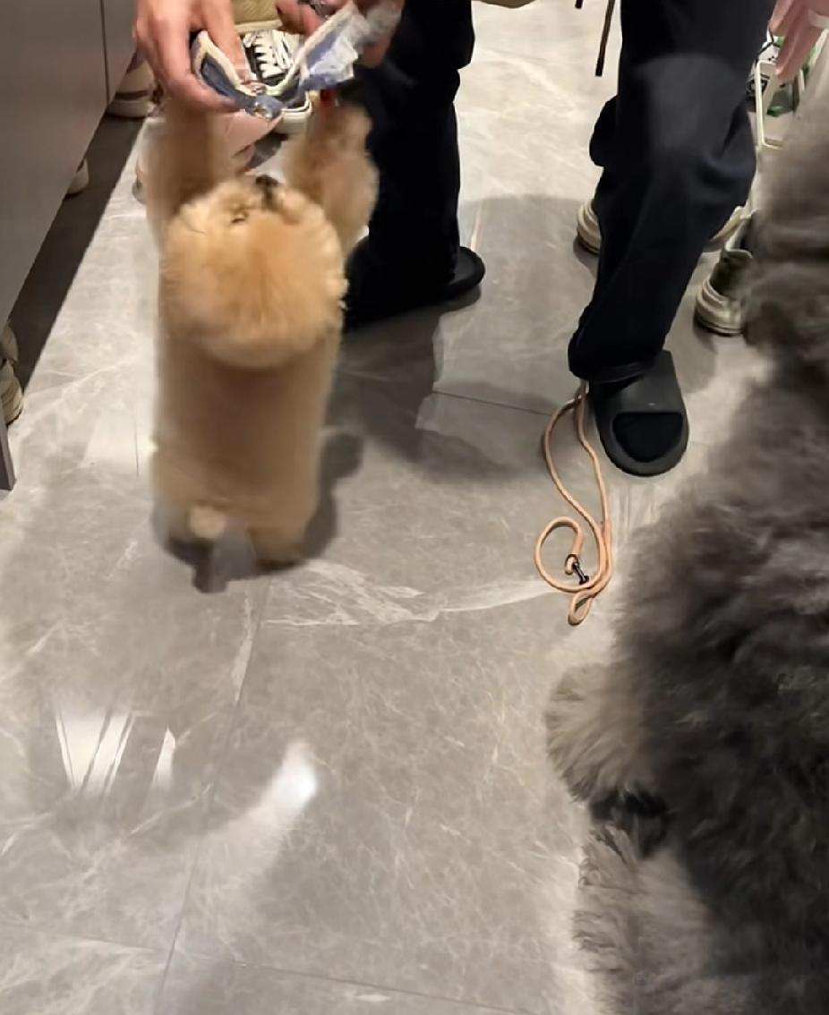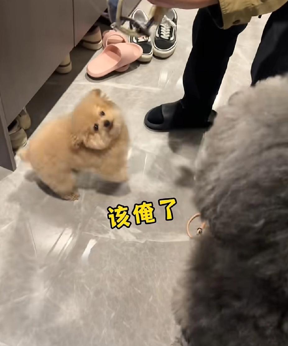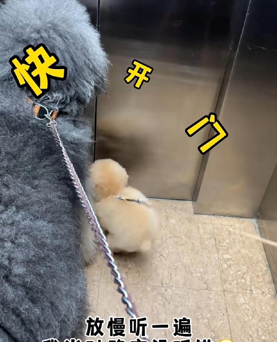 太搞笑了!主人同时带两只狗子出门,一只小比熊,一只灰毛大泰迪。这天主人操作失误,先给大泰迪套了牵引绳。 小比熊以为主人出去遛狗不带自己去,于是在一旁急得哇哇直叫唤,听起来说话不太文明! 直到看到主人拿起了自己用的那根牵引绳,小比熊才停止了骂骂咧咧,抬起两只前腿,做站立的姿势。恨不得自己钻进脖套里,迫不及待的样子真的太可爱了! 套好牵引绳后,主人带着一大一小等电梯,小比熊又开始了叨叨叨模式,甚至还吐出了一句“快开门”! 虽然都知道比熊说人话只是巧合,但狗子说出类似的人话,还是让主人感觉十分有趣!不知道大家都见过哪些宠物趣事呢?#比熊# #带泰迪兜风# #会说话的比熊#