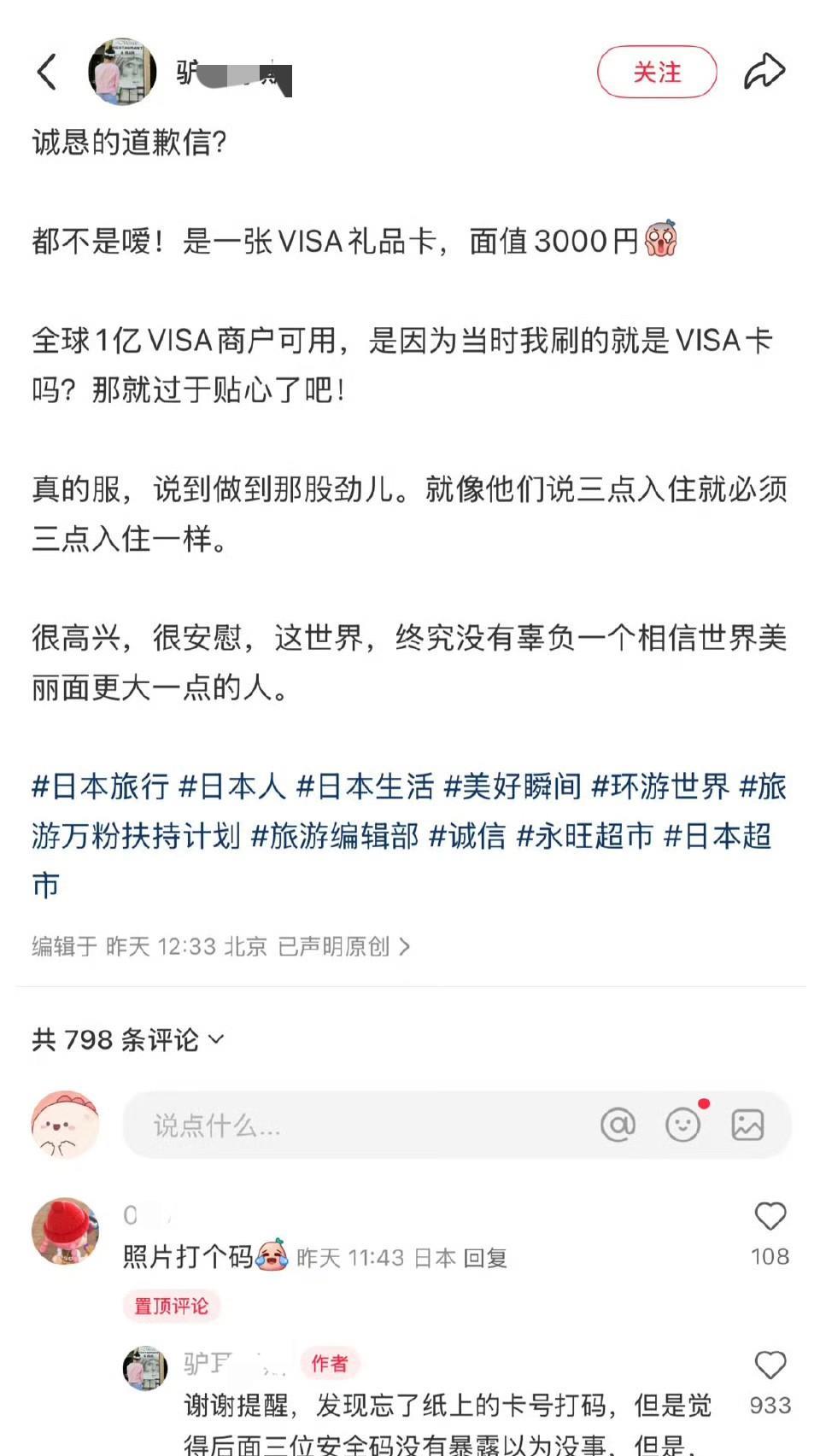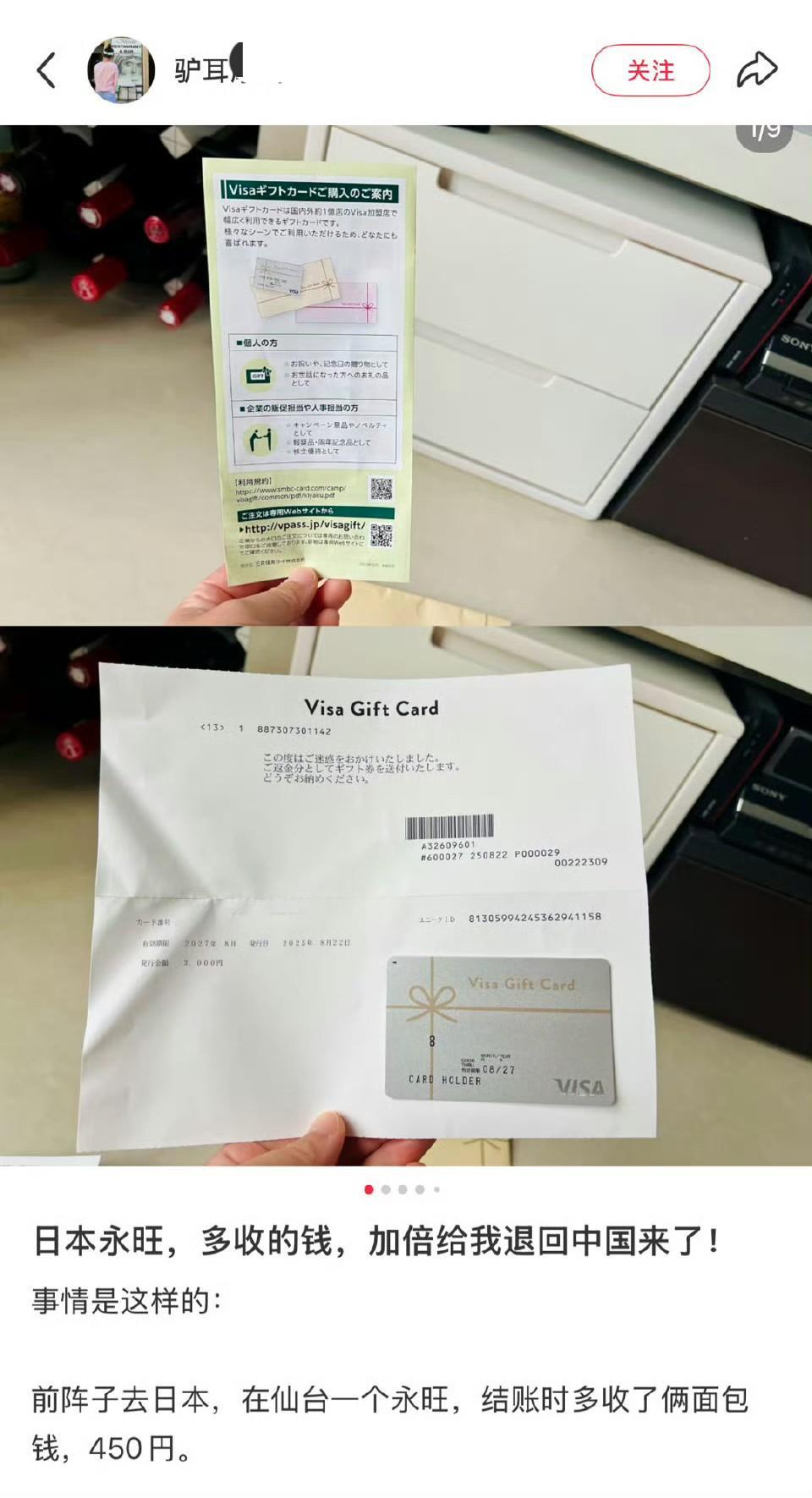 今天刷到最冷幽默的帖,楼主在日本被错收450日元,日本人赔了张3000日元现金卡。她发小红薯不打码,刚发出来就被别人领走了。 近日,一位中国游客在社交平台分享了在日本仙台永旺超市的一段退款经历,引发大量网友关注。 起初只是一次普通购物时的小插曲:超市系统多收了450日元,折合人民币约22元。大多数人可能会选择算了,但这位游客还是通过邮件向永旺超市提出了疑问。 令人惊讶的是,对方的回应不仅迅速,而且态度认真。 第一时间回复邮件后,工作人员提出可以上门退款。得知游客已经离开日本,对方仍然积极尝试,通过多封邮件轮番沟通,先后询问了是否可以通过其他账户、转账渠道进行退款。 游客明确表示自己是外国人,已经离境,不便处理。甚至婉拒了后续操作,向对方致谢,并希望事情到此为止。 然而对方并未就此放弃。 几天后,工作人员再次发来邮件,询问是否可以提供一个在中国的收件地址。这位游客抱着试试看的心态,将住址发了过去。 此后一个多月没有再收到回信,游客也并未放在心上。 直到某天收到一通电话:一份来自日本的国际EMS包裹已寄达。 打开包裹后发现,并不是一封致歉信或退款单据,而是一张价值3000日元(约合145元人民币)的Visa礼品卡。相比原本的450日元退款金额,足足多出六倍。 接下来,出现了一个欧亨利式的转折。 有网友在评论区提醒她:卡片上的卡号未作任何遮挡,快点打个码。 可惜晚了一步。 等到陷入“这个世界上还是好人多啊”的楼主,从幸福的感动中醒悟过来,看到评论里的提醒时:不好!属于她的3000日元,已经被人刷掉了。 而且,这次真的回天无力,完全追不回来。 这种“晒卡图后被盗刷”的情节,在日留学生里其实早就是老骗局了。 不少在日留学生早有类似遭遇。 有位IP地址在日本的华人就分享,很多留学生一过来日本,就会被诱导去便利店代购礼品卡,对方谎称需要海外充值或当作生日礼物寄人。 受害者一旦拍照发卡图过去,骗子就会立刻将卡内金额转走,并立即拉黑所有联系方式。连报警都没用。 情节一波三折,最后煮熟的3000暖心日元还是飞走了。