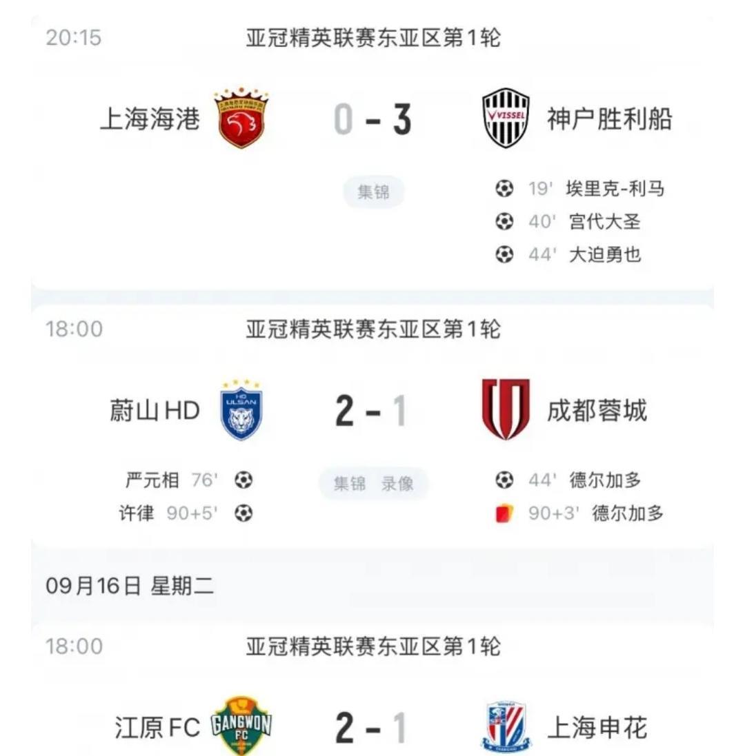 中超第一蓉城上主力,1-2蔚山HD! 中超第二海港上替补,0-3神户胜利船! 中