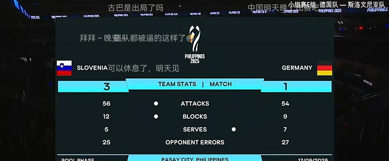 男排世锦赛小组赛,德国男排1:3负于斯洛文尼亚男排。德国战车被打回家了[不看] 斯洛文尼亚男排小组第二晋级16强,下一个对手是美国男排。 第四局德国男排中局落后9:15,公屏有留言:德国战车要散架了 没想到德国男排还追回来了,17平、21平! 德国男排二传也是真轴,换上来的接应体力充沛,还是不给球,依然传边攻,给斯洛文尼亚男排拦网降低难度[不看] 德国男排教练怎么也不提醒一下呢? 德国男排实力不算弱,只能说分组运气不好,没进16强有点遗憾。 #记录我的2025#