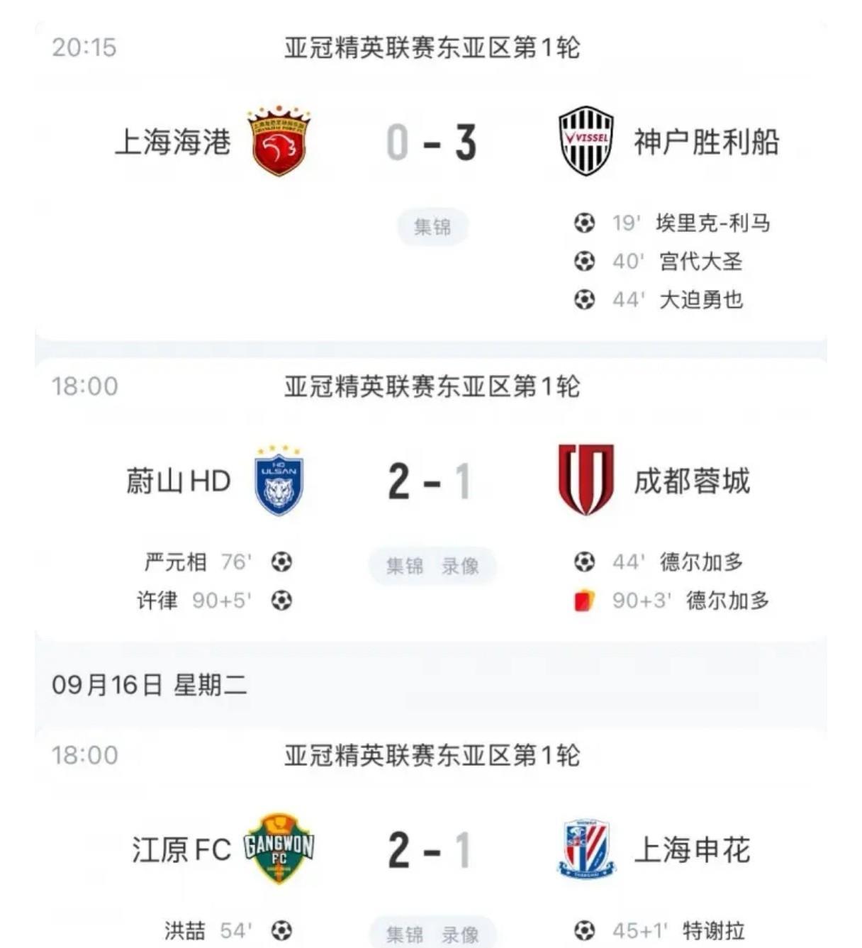晨报!中超球队昨晚传出的新消息 这是中超的国内评议组专家们都不敢表态了吧! 中超头名:蓉城1-2蔚山 中超次名:海港0-3神户 中超第三:申花1-2江原 54岁的欧洲足坛名帅苏穆迪卡已确认接受中超升班马云南玉昆的执教邀请 昨天,@苗原在社媒透露舒穆迪卡在云南玉昆的工是100万欧元,12月就可以到位。 合842万人民币,足球裁判真是个好差事! 2025-26赛季亚冠二级联赛小组赛 第1轮 北京国安(中国) VS 河内公安 (越南) 时间: 2025.9.18 20:15 地点:北京工人体育场 直播:咪咕视频、爱奇艺(付费)
