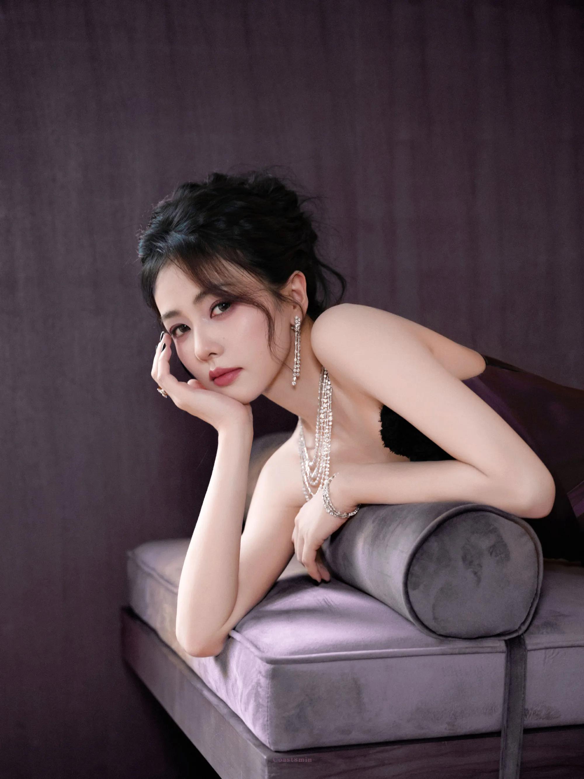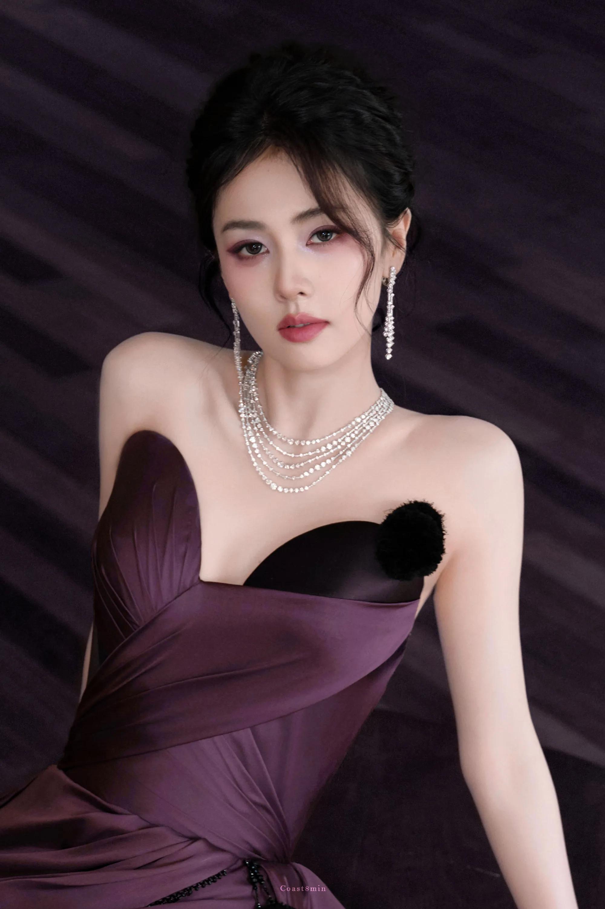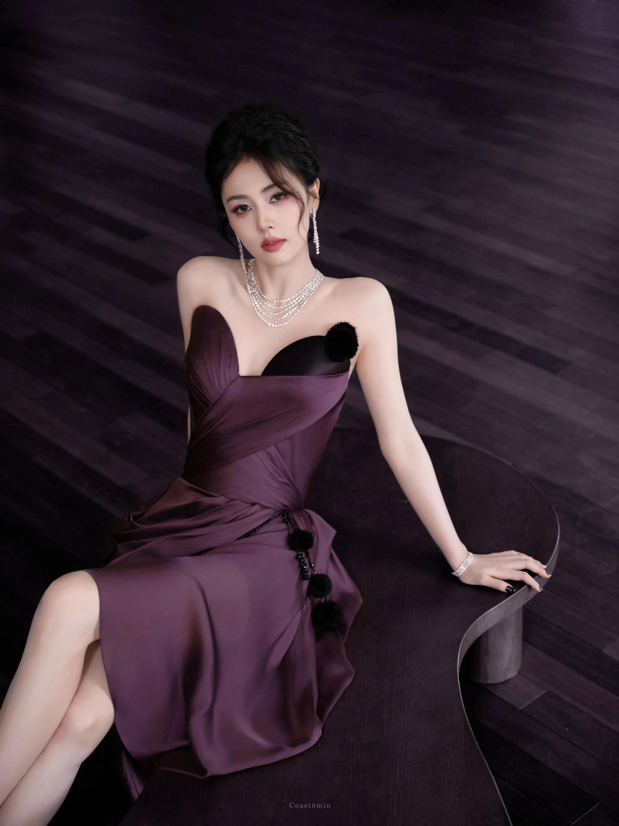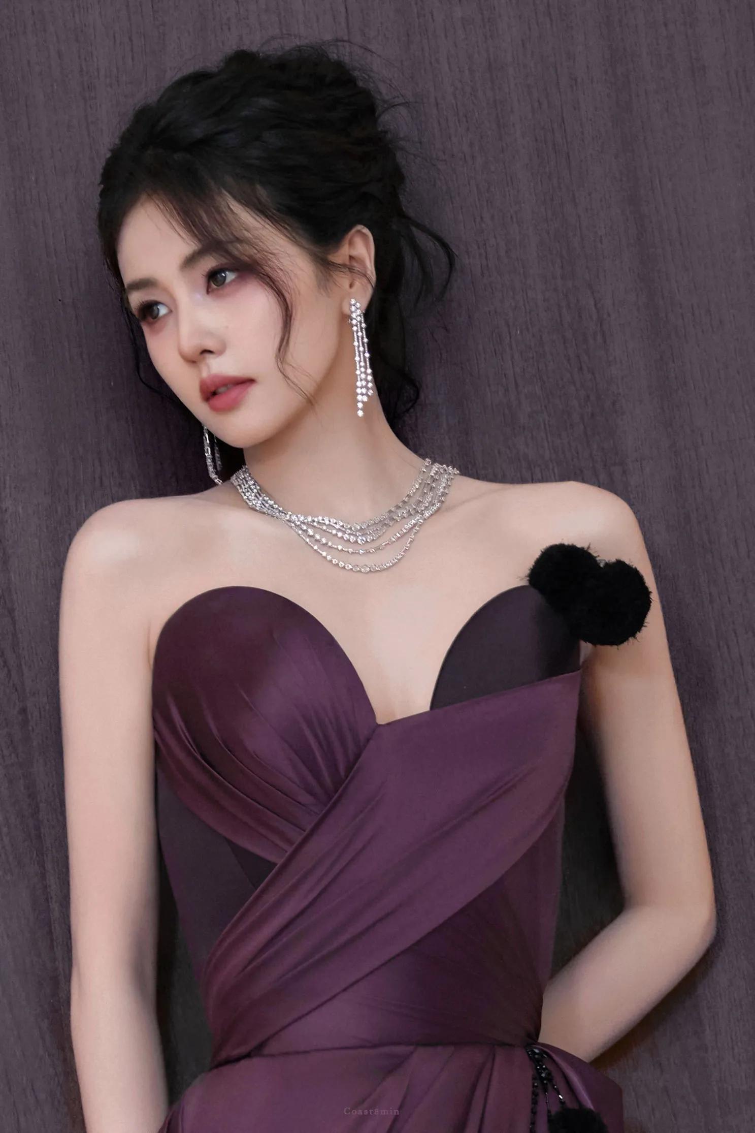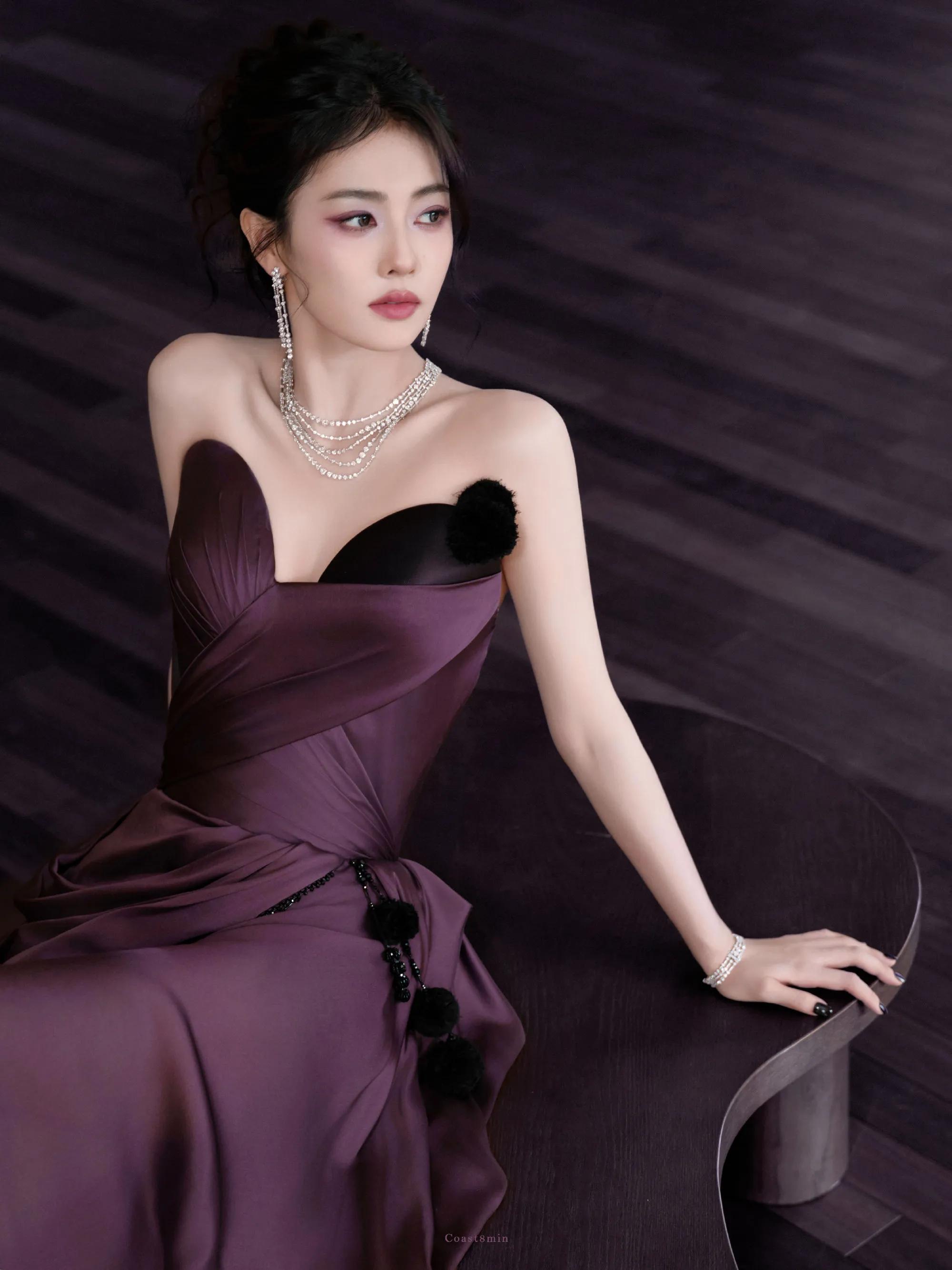 祝绪丹紫色抹胸连衣裙,感受到了祝祝的美貌暴击