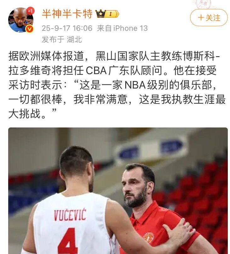 名字后缀带维奇的教练有扬科维奇、伊万科维奇、乔尔杰维奇…都为中国足球和篮球事业做出了不可磨灭的巨大贡献!现在宏远聘请的顾问拉多维奇,曾经任黑山国家队主帅,就凭他说广东宏远是NBA级别球队,想必也是实力不俗、颇有见地的世界级名帅!如今如虎添翼实力大增的广东宏远,新赛季目标恐怕只剩夺取队史第12冠一个目标了!
