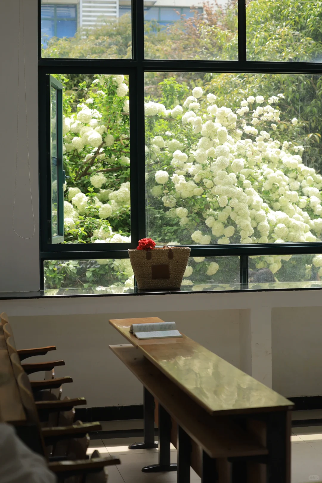 武汉这片木绣球花瀑布开爆了美哭 节假日去的4.5实拍居然没啥人 相比其他热门机位真的太香了 开的非常好花密集且低矮 居然还能拍到木绣球窗景 📍中南财经政法大学南湖校区 文泰楼 📝因为是校园注意文明安静赏花不要影响他人喔