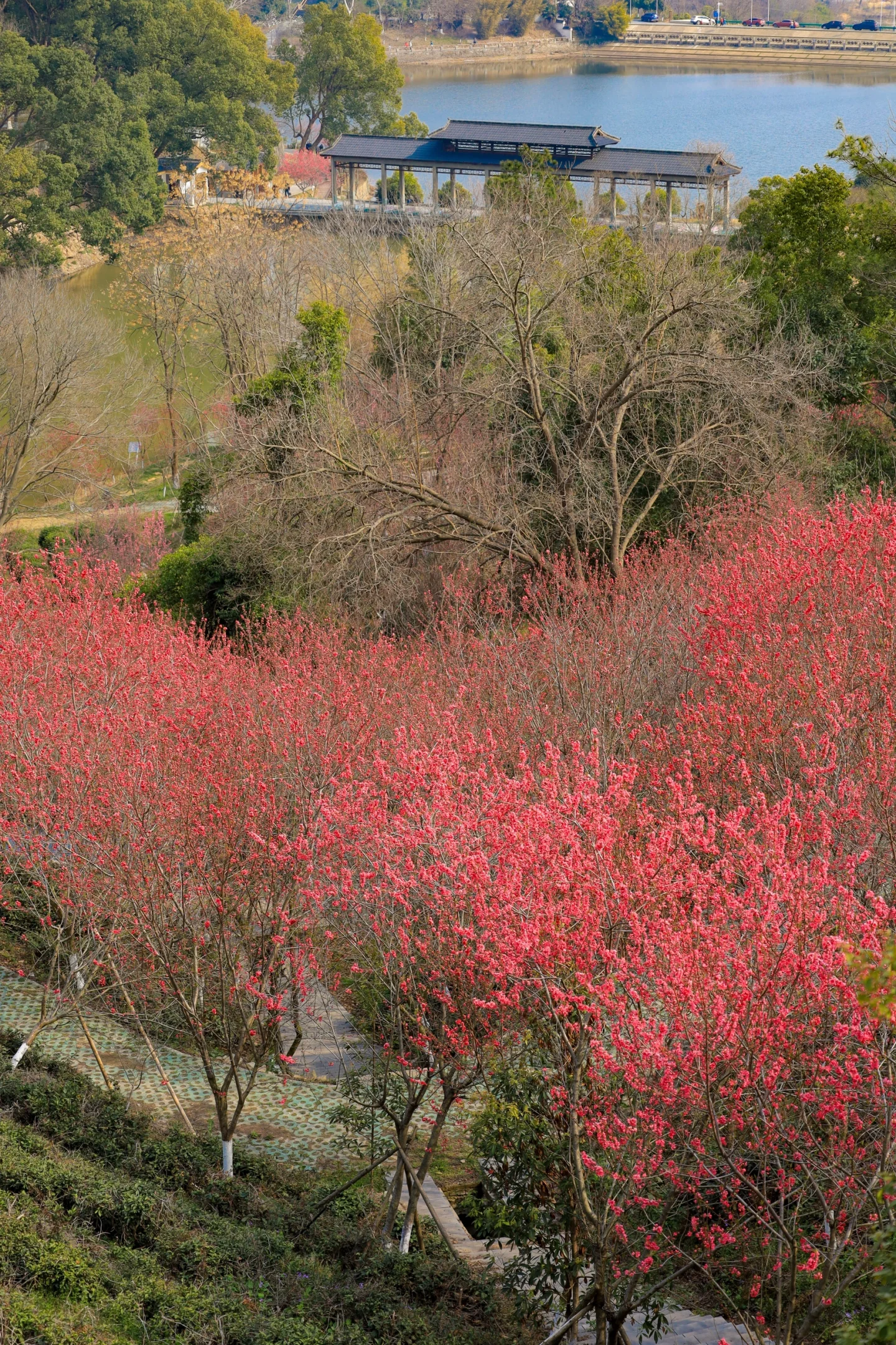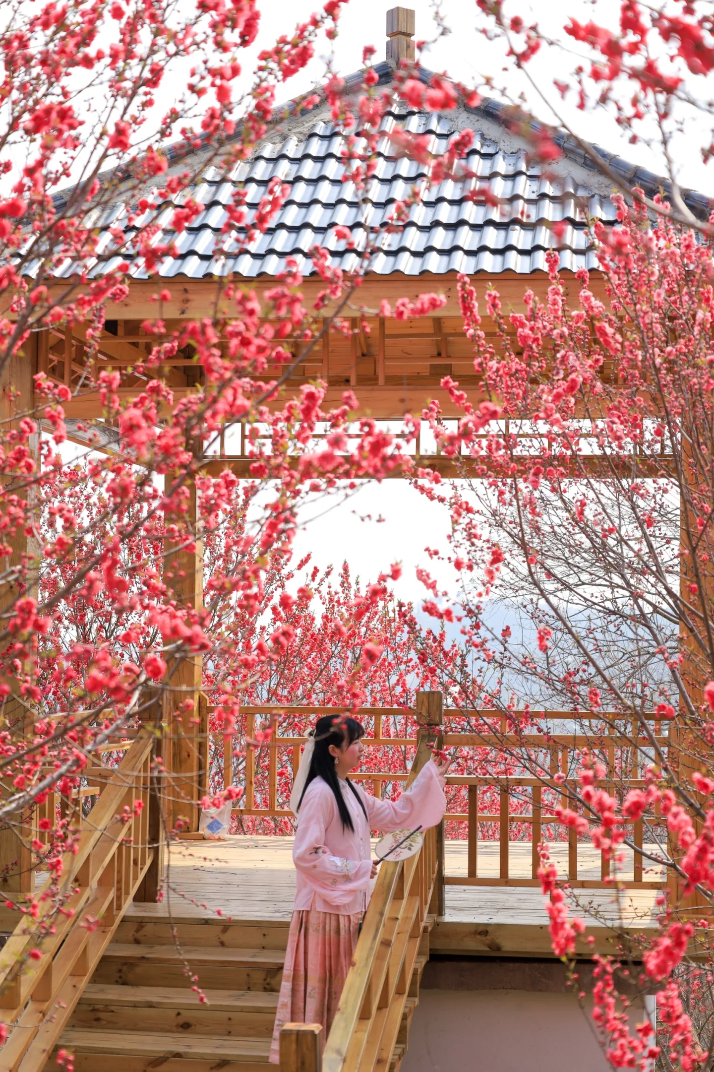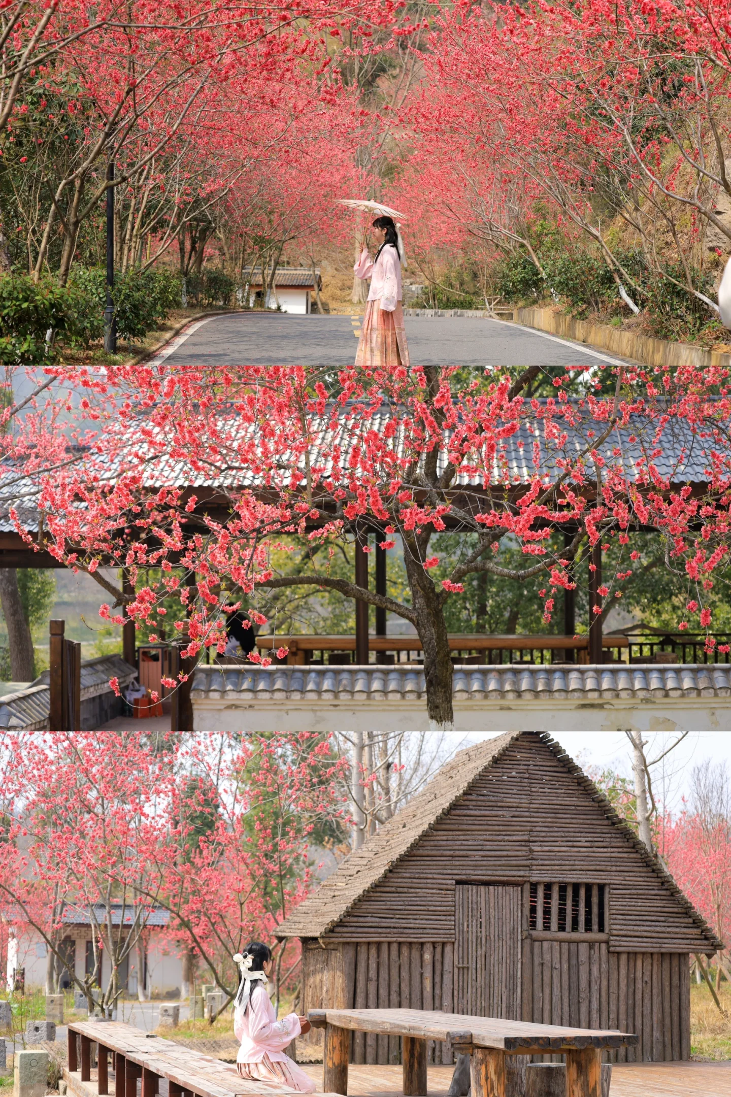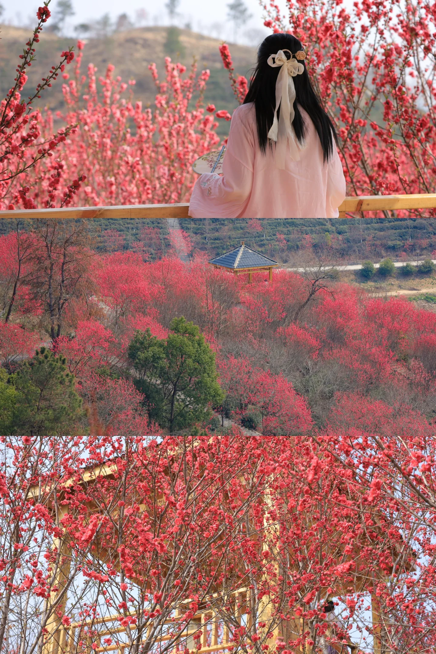 春天武汉的浪漫不止樱花🌸 武汉周边还藏着一片茶谷花海秘境 漫山遍野的花海瀑布绯红如霞 6万株贵妃南极红盛开美的让人心醉 沿着蜿蜒的步道徒步赏花 几步一景,避开人潮受静谧 🏠花乡茶谷 🕒游玩时间3-4H 📷拍照机位 ✔️望月亭 中式亭台楼阁搭配梅花,站在木门前、坐在院墙上拍照很有禅意 ✔️南极红大道 花海蔓延几公里,拱形的粉色花海通道很出片,半山腰被花海围绕的凉亭人少景美 ✔️贵妃谷 沿阶梯而上一路生花,登上观景台可以俯瞰美景,繁花幽径里的圆拱门宛如园林画卷