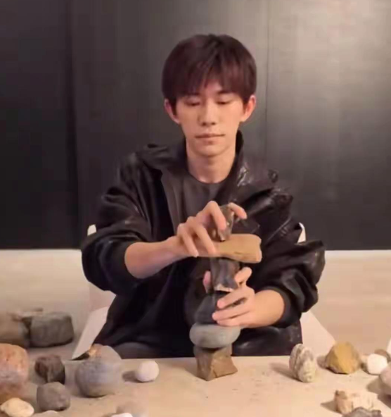 我全程看下来,发现他随口说的那几句都没有堆石头更有趣。他一块块往上叠,反而让人忍不住笑出声来。可问题是——你到底是来做什么的呢?