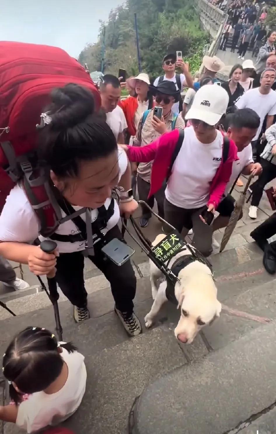 盲人夫妻带导盲犬爬泰山,引发网友热议。 很多网友认为,泰山很难爬,人类爬上去都很