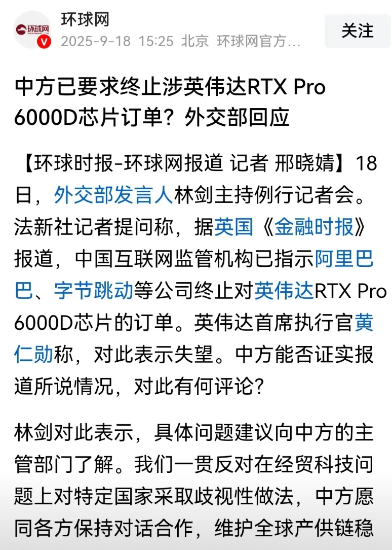 英伟达掺乎进中美博弈的政治漩涡中,才导致现在的处境。黄仁勋要想重新获得中方的信任,太难了! 英伟达要想重新获得中国的巨大市场,英伟达只有一条路那就是与美国政府切割,大白话就是不受美国政府控制,做一个中立的科技巨头,但这个几乎不可能。 英伟达的芯片有没有后门都已经不重要了,因为在中方的眼里,英伟达的芯片就是不安全,这现在就是死结。