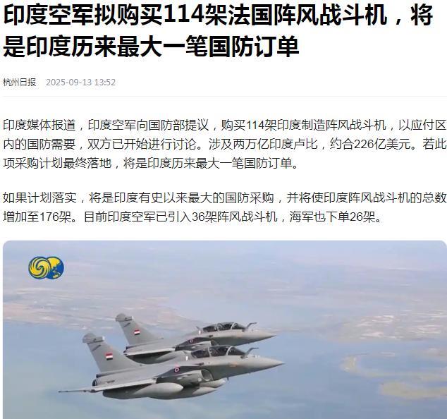 印度空军计划斥资226亿美元,继续采购114架阵风战斗机?这说明印度认为自己处于极度危险之中,“可能性恐惧”依然在驱动印度决策。 按照印度空军计划,苏联时代制造的米格-21战机将在本月全部退役,届时印度空军将只剩下29个战斗机中队,远远低于编制内的42个战斗机中队。 五代AMCA战机依然处于PPT二次元状态。芳龄42岁的“光辉”战机直到现在还是一架“薛定谔战机”:当你以为它要服役时,它在升级;当你以为它要嗝屁时,它居然成功试射了导弹。它的维护手册厚过《牛津词典》,每一架飞机都是“限量款”,因为零件不通用。 印度自建国以来,累计装备了900多架米格-21,目前已坠毁近500架,造成了171名飞行员死亡。从1963年服役至今,它已是全球服役时间最长的现役战机之一,比伊朗空军的F-14都年长。 但真正让米格-21陷入死亡循环的,是印度斯坦航空(HAL)的维修保养体系,其维修车间被誉为“战机殡仪馆”。被多次曝光伪造检修记录,经常使用二手零部件,甚至用拖拉机零件替换航材。 这些年,经HAL大修过的米格-21,80%都坠毁了。2024年,一架苏-30MKI坠毁,调查发现HAL维修之后,竟然还有一堆螺丝没装回去,维修手册被当作防火棉塞入机体,主打一个凑合。 印度教或许会宽恕印度的错误,但万有引力从不原谅侥幸的印度米格-21,从不跟印度飞行员讲道理,只讲物理。所以,印度空军真的受不了了,坚决要求退役全部米格-21。 按理说5.7空战之后,印度最好的选择应该是苏-57E,毕竟印度三军装备中,俄制武器占比高达70%,俄制战机占比更是达到80%以上。而且印度如果购买苏-57E,俄罗斯还承诺转让技术呢! 但印度已经看不上俄式牛夫人了,因为它的航电系统依然停留在苏式电子管时代。雷达抗干扰能力弱、可靠性过于弱鸡。 特朗普第二任期上台时,莫迪访美,双方开启蜜月期。重点讨论了武器采购,其中就包括引进F-35。印度坚持要求技术转让和本土生产,但F-35涉及多国合作,美国从未向其他国家开放核心技术或生产线。 但5.7空战之后,美国就不可能再卖F-35给印度了,万一被打下来,那整个F-35项目就废了。此外,印度宣讲团口嗨,一会说5.7空战打下巴基斯坦5架F-16战机,一会又打下8架,彻底把美国给惹怒了。 特朗普甚至公开宣称印度是“死亡经济体”,搞得印度哀嚎一片:“特朗普贬低印度经济是死亡经济,这种赤裸裸的侮辱从未发生过,即使在70年前也没有!”而莫迪只能干巴巴回应“我们会成为世界第三”。 排除美俄战机,西方世界最先进的战机也就剩法国阵风了,哪怕被老六歼-10C揍得找不着北,它也是欧洲最先进战机。 其实,从早年采购“飓风”战机到冷战“神秘”战机,再到“幻影2000”和“美洲虎”攻击机,再加上此前采购的36架“阵风”。印度早就跟法国结下了深厚的战机友谊,从人员培养、后勤维护等方面来看,印度现有国防体系可以跟阵风战机做到无缝连接。 所以,即便阵风被歼-10C虐得体无完肤,法国也依然被印度视为值得信赖的战略防御伙伴。此外,印度与法国的采购通道一直都很坚固,它不仅是一条战机采购通道,也是相关人员的致富之道。 比如上次印度下单126架阵风,要求技术转让与合作生产。最后虽然只付了24架的钱,但法国给的是36架二手阵风,技术也没给,大伙感受下这其中的猫腻。 据说,这次的114架阵风将由法国和印度共同生产,其中60%的零部件将产自印度。法国赛峰还宣布要与印度联合研制新一代发动机,为印度五代隐形战机提供澎湃动力。得嘞,又绕到“印度制造”了! 其实,始于2014年的印度制造,就是一场存在主义危机下的集体表演。当民族主义叙事遭遇工业化能力缺失时,权力与资本便合谋构建了这套精妙的话术体系。 首先将“国产化”确立为印度政治正确,再“进口替代”异化为寻租工具,最后用“技术自主”包装财务欺诈,说到底就是用民族主义包裹发展权让渡。 典型就是“光辉”战机,印度人在它身上倾注了无数情感,但它就是中国零件和德法技术的贴牌,是消费主义对军工复合体的完美驯化,通过制造“国产化”幻觉,完成对印度纳税人财富的仪式性转移。 印度军方嘴上嚷嚷去除供应链中的中国零件,实际却用几倍,甚至几十倍溢价曲线进口中国零件,贴上印度制造标签,再以国产突破名义申请印度政府补贴,最终形成一条自我麻痹的走私生态链。 所以,无论是印度制造,还是国产替代,都是一场三方合谋的庞氏骗局:政客收割选票,商人套取补贴,军方收取佣金。然后,用爱国情怀给回扣开发票,印度纳税人则为皇帝的新装买单!