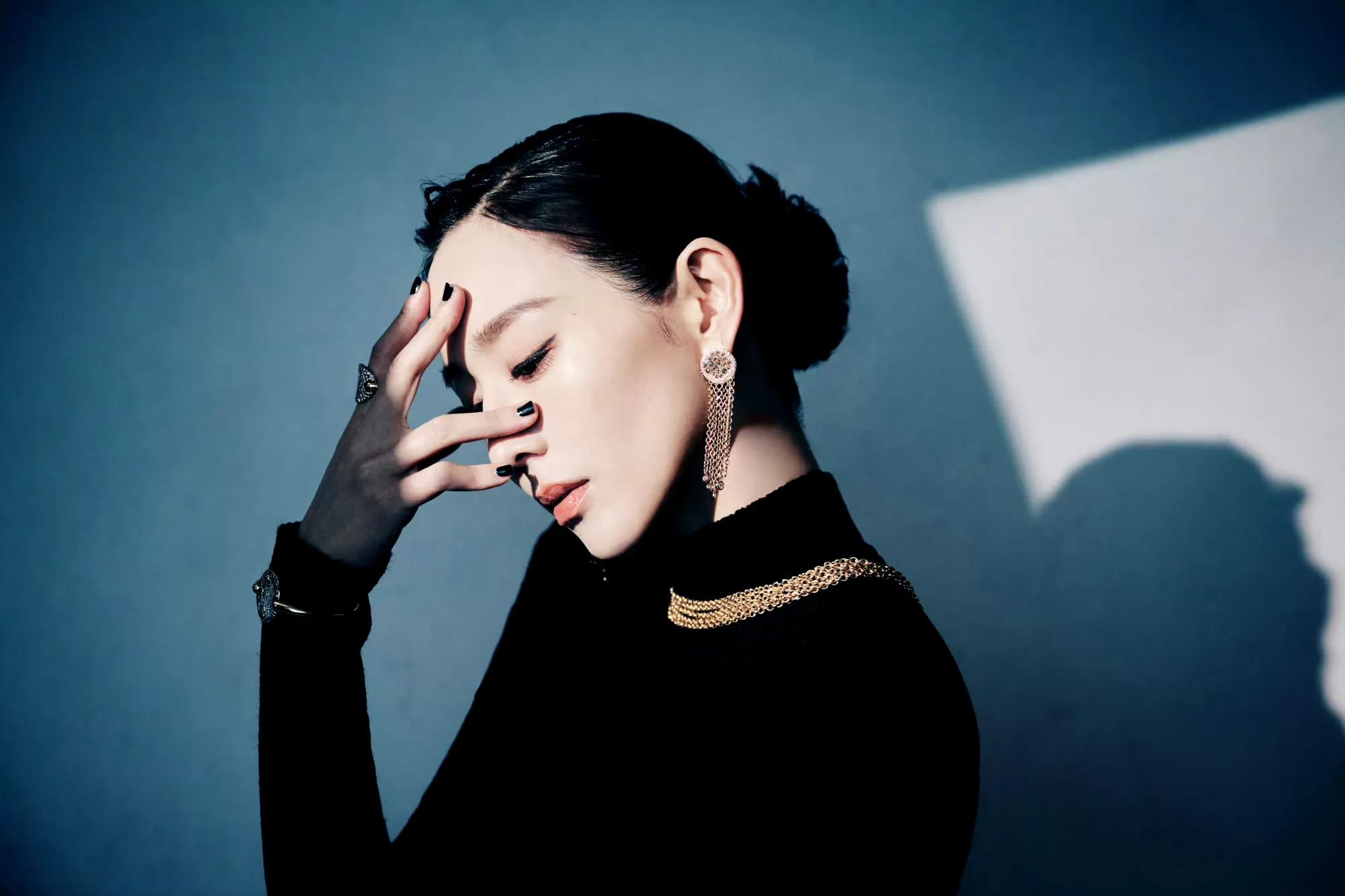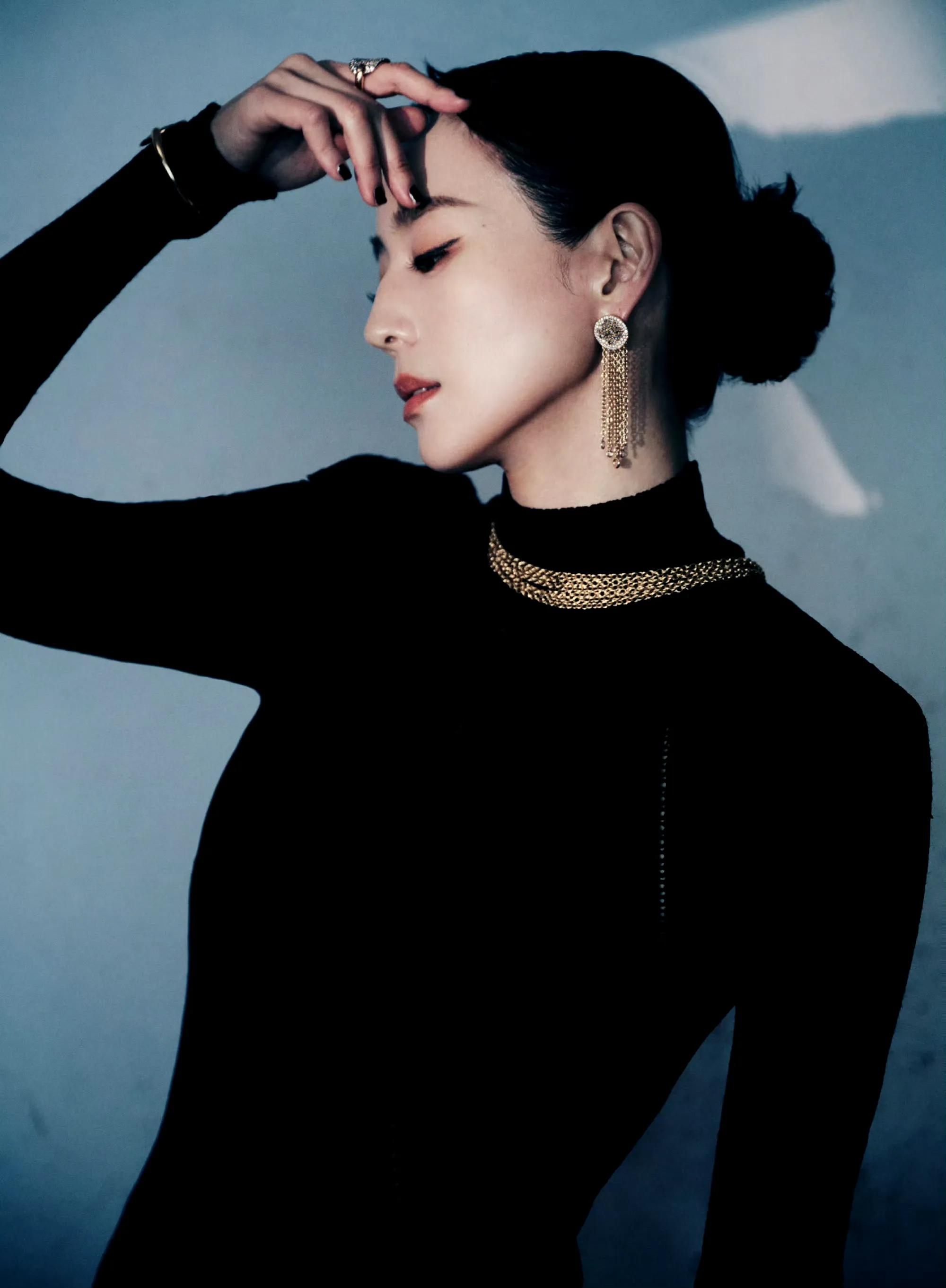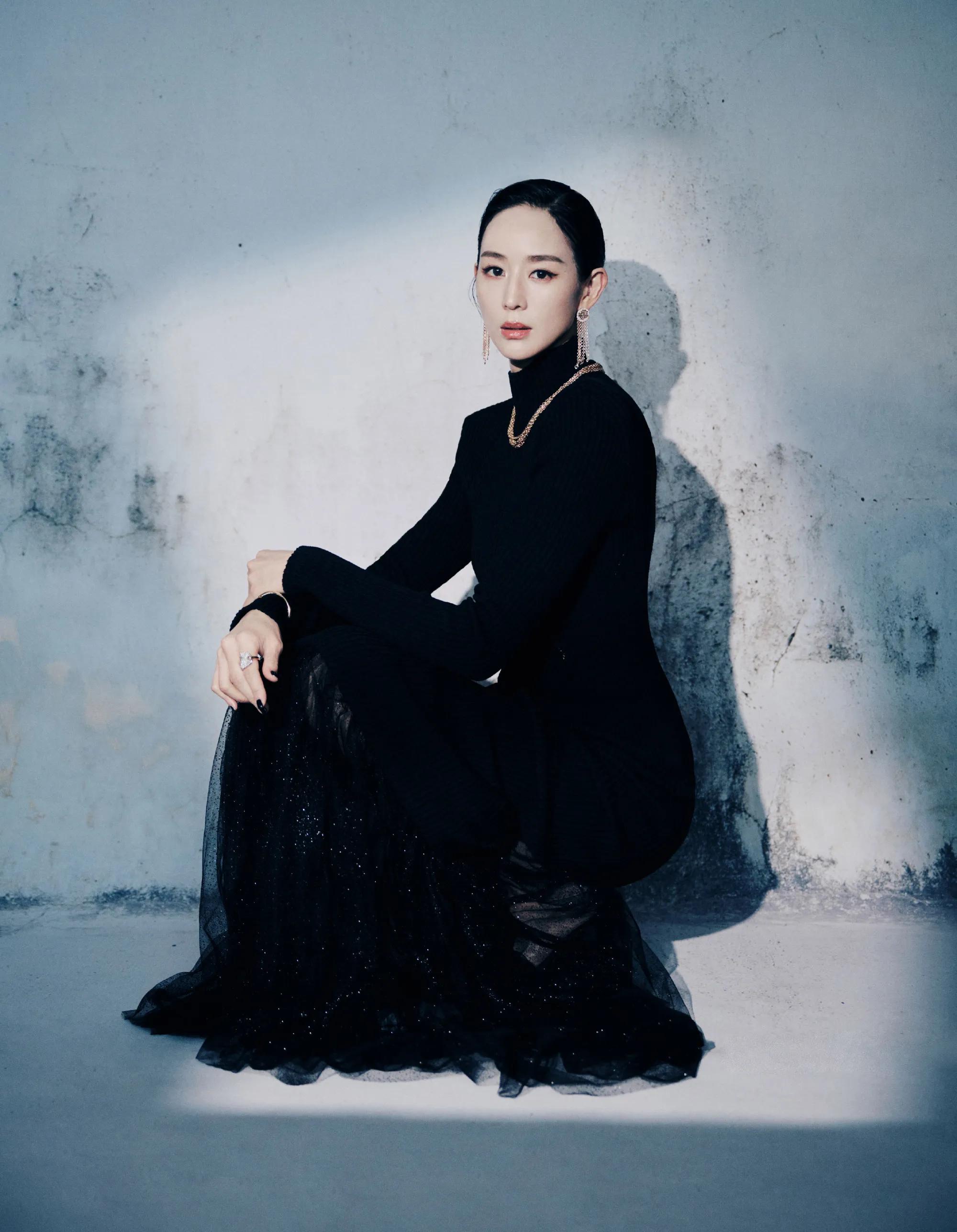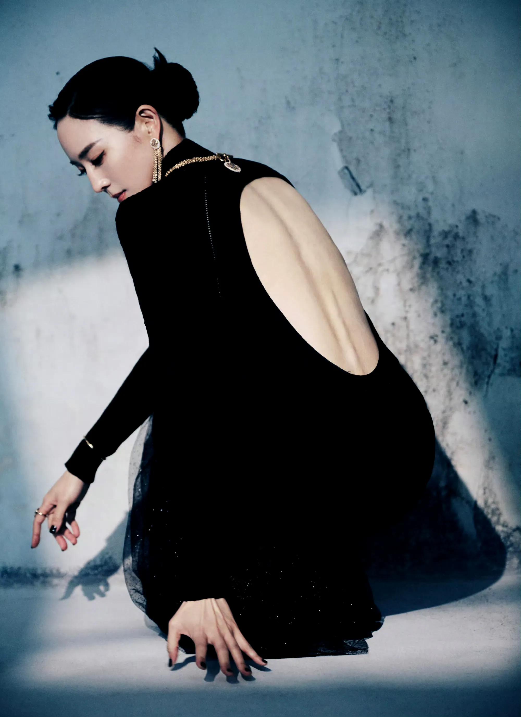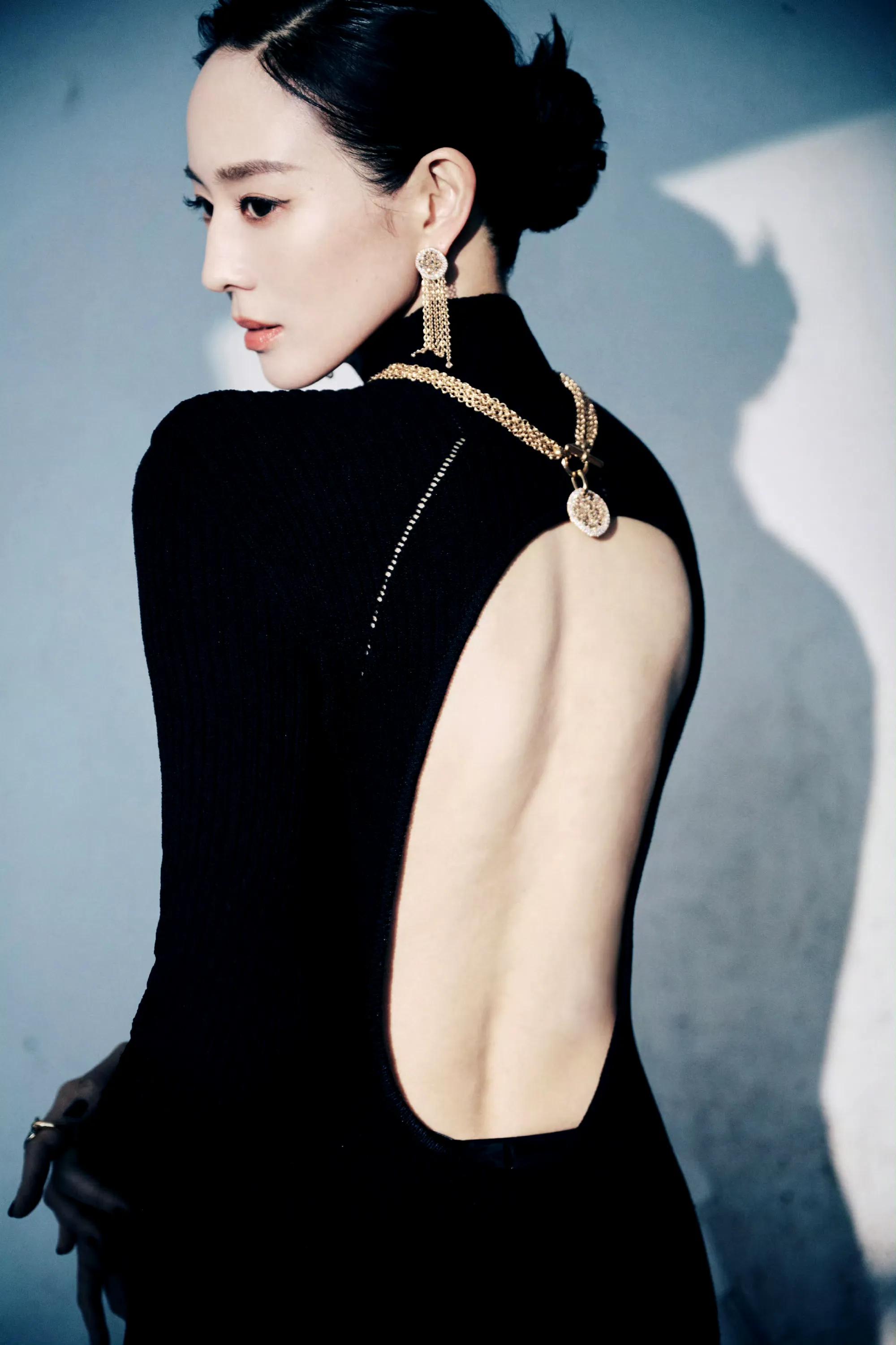 张钧甯纯黑紧身连衣裙,这大露背太美了