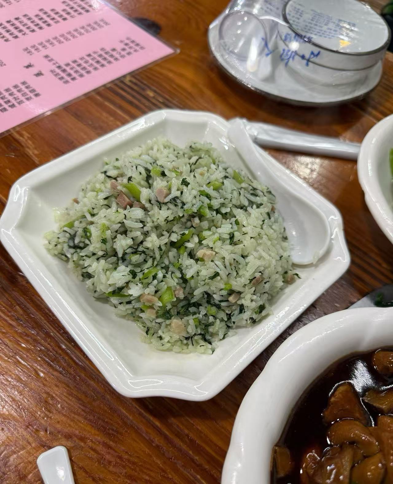 2️⃣.咸肉菜饭,翠绿的青菜,米饭吸收了肉香和菜香,口感丰富。