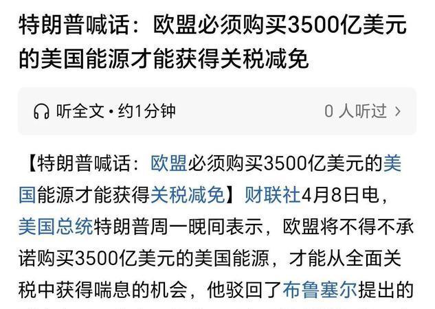 精神胜利法 尽管今年至7月底末,欧盟从美国的石油、LNG和煤炭进口量达到了约760亿美元,但根据欧盟私下的核算,实际采购额应该还未达到协议承诺的规模。 如此这般,欧盟感觉自己还有两把刷子的,即面对美国每年从欧洲进口达3100亿美元的商品,岂不是“供大于求”? 换一个说法,就是欧洲人的商品在美国更加重要和受欢迎——如此一来,岂不就是自己的底气更充足一些? 这么一想,欧洲人马上来了精神,明白到美国比任何人还需要自己,也就是说自己也应该是可以翘翘辫子。 细想一下,美国人总是要求欧洲人不要再购买俄罗斯的天然气,无非是要转向购买他们的能源,而事实是他们自己都不够用。 那么,石油也是如此,美国人又没有大油田,自己吃不饱的情况下怎么还会“施舍”给别人?唯一的答案就是转手赚钱! 而剩下的就是核燃料——这玩意儿可是“刹手锏”,即使是忽略了它的作用,但捆绑后的效果还是显而易见的。 即就是欧洲人不得不购买美国的能源——明知道它居然还是来自俄罗斯的,甚至还有的是抢来的。 所以,在美国每年需要欧洲的3100亿美元商品,比起欧洲需要美国的2500多亿能源面前似乎是还有余地。 所以,回头一想,特朗普对于欧洲的关税政策难道不是吓唬人,而需要欧洲人购买其能源和商品,甚至是投资却是真的! 突然醒悟过来的欧洲人感觉一下子亢奋起来,迅速的调整状态,并准备强硬回应美国的“无理要求”时,又发现其实欧洲低头认输的不只是能源,还有防务和科技。。。。。。 如此这般,短处被人拿捏的现实面前不得不低头。所以,欧洲人只能是在脸红脖子粗的气恼中忍声吞气。 为了彰显出对美国人的尊重,欧洲人不仅应允了关税和投资,又承诺在三年内购买 7500 亿美元的能源,另外再加1000亿的军事装备。 最终,精神胜利法让欧洲人在“疯颠”中崩溃了又清醒,一边想挥起大棒,一边又叹气的低头,一副垂头丧气的模样。