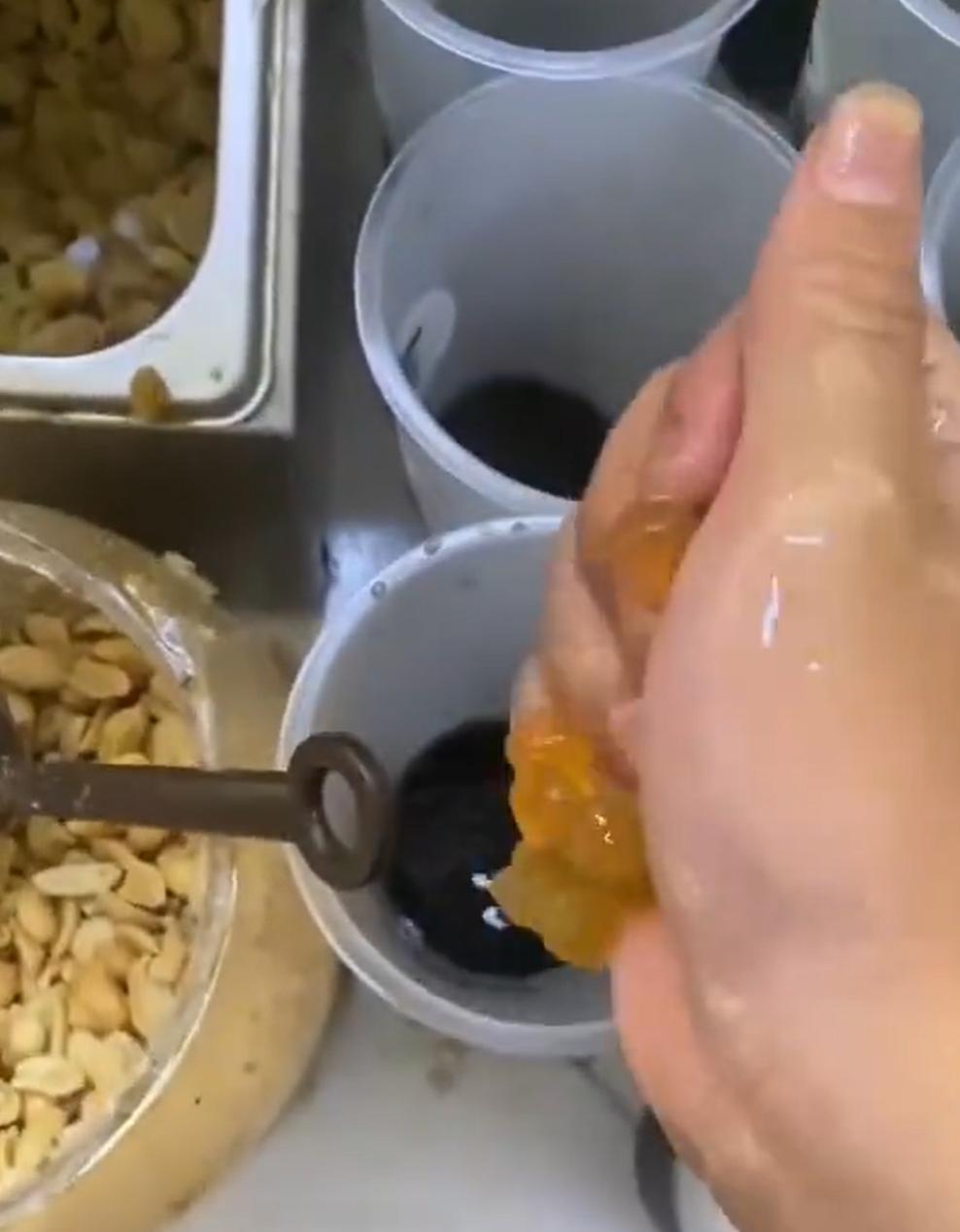 9月17日,广东省深圳市一家名为“某某贡茶”的奶茶店,一名新入职40分钟的男店员(据说17岁)看老员工背对着自己,突然脱下拖鞋,拿起来放到珍珠料盆里搅拌,随后徒手将珍珠抓起,放到奶茶杯里。店内的操作台脏乱不堪,这名新店员将手上的脏污抹在台面上,又开始乱摸其他料盒里的食材。 整个过程,他不仅拍了下来,还发布到了社交平台上。 店长发现后立即报警,质问其为何要这样做,对方答觉得好玩而已。 目前,该店员已被警察带走调查。奶茶店已将所涉及食材和器具全部销毁,停业整改。 十七八岁也不是小孩了,居然搞出这种恶作剧,还自己拍下“罪证”发布,真不知道当初是如何通过面试的。 既然他觉得这样的奶茶好喝,不如让他把污染掉的食材全喝掉,也算是废物回收利用了。拘留几天,希望能长点脑子吧!