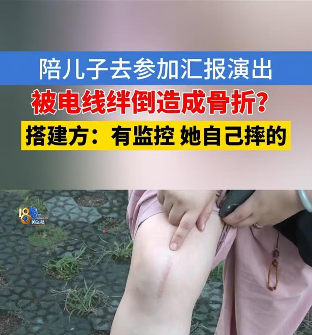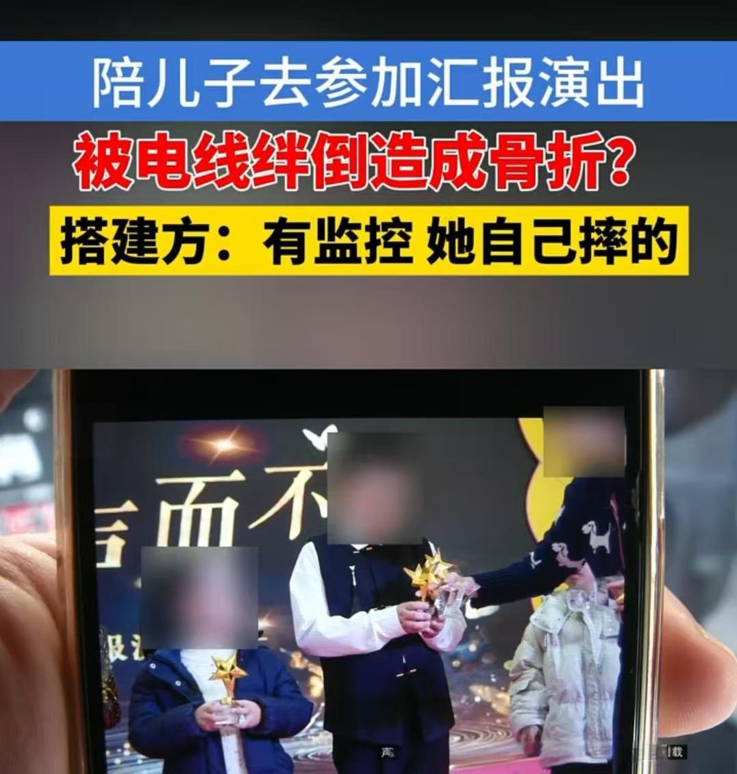 宁波,女子参加儿子的汇演,被电线绊倒,要求机构赔偿7万9,机构说舞台是商场搭建的