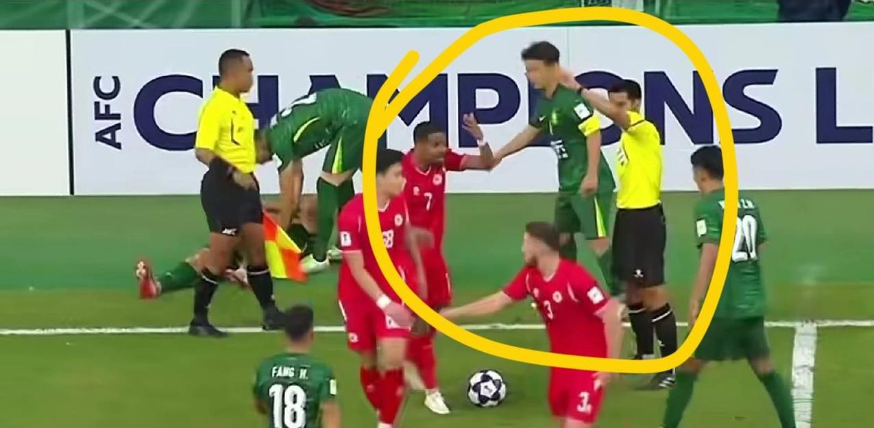 原来两队大规模冲突的始作俑者是国安队长池忠国。 当时何宇鹏被撞翻倒地在场外,主裁判上前招呼队医过来在场外治疗以免影响比赛,这时池忠国的小聪明来了:他用右手手势加喊话何宇鹏滚回场内来治疗拖延时间,听话的何宇鹏果然滚了几下回到场内,这时河内外援不干了,上前质问何宇鹏。 更大的冲突是河内72号外援把何宇鹏单腿拖到场外,何宇鹏立马起身还击,然后两队大规模冲突上演了。