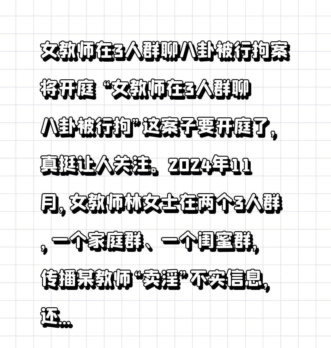 女教师在3人群聊八卦被行拘案将开庭女教师在3人群聊八卦被行拘案将开庭 此次开庭