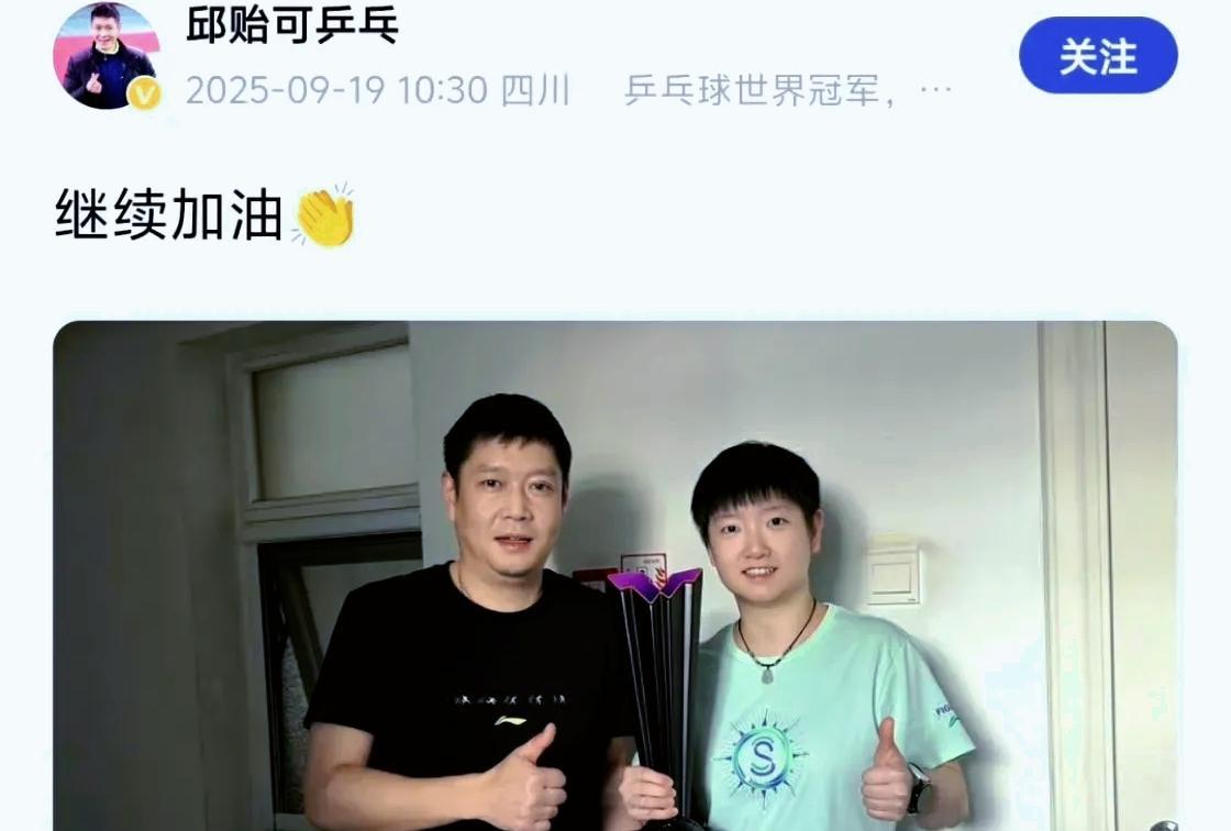 Coco如果再不发合照, 很多人心里都该蛐蛐了: 这老太阳是要闹哪出啊? 该说不说, Coco之前都很有规律, 闺女夺冠当天或者第二天, 他一准儿会发合照小作文, 这几乎成了约定俗成。 这次不知道为啥, 澳门冠军赛之后, Coco有点静悄悄, 球迷一直伸着脖子等, 等他啥时候发合照, 那可是闺女给他的露脸时刻! 千呼万唤始出来, 今天Coco终于发文发合照了, 还是一样的配方一样的味道, 莎莎开心地举杯, Coco在一边乐呵! 挺好的, 闺女的奖杯越多Coco越开心, 希望这对最好的师徒一路生花, 老太阳小太阳照着我们暖洋洋! #记录真实生活#