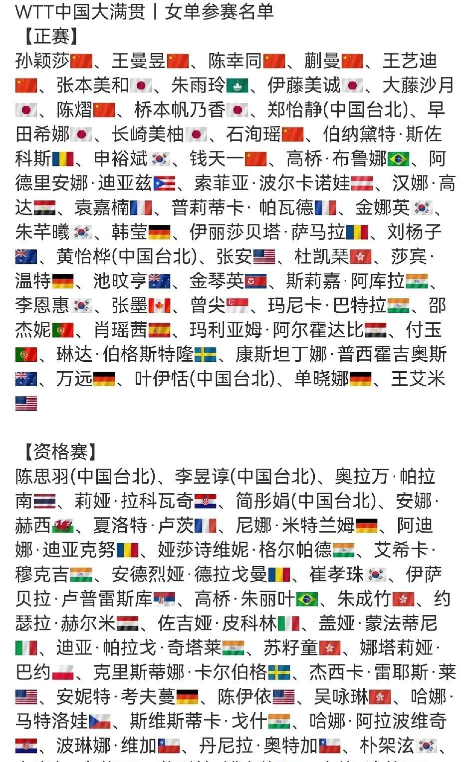 哈哈,金琴英和卡尔伯格退赛, 国乒女队一口气上了四个! 他们四个也都是拿冠军的苗子。 对了,平野美宇由于在乒超联赛的优异表现, 也拿到了外卡资格。 佳佳和小蘑菇都很强, 如果国乒不参加, 他们两个都可以争冠军了!
