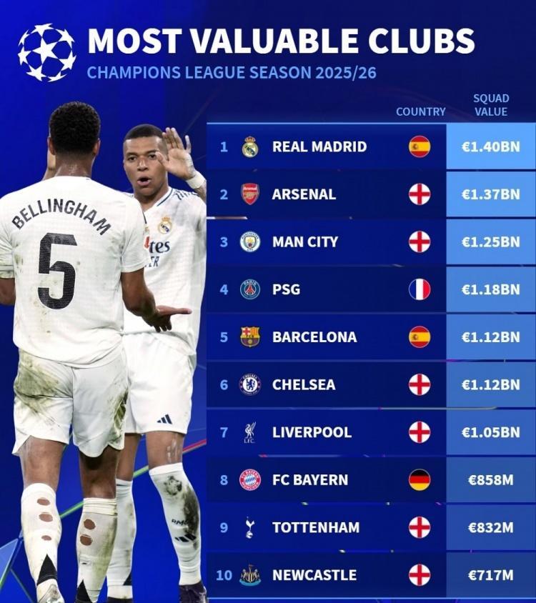 绿茵资料库! ★姆巴佩皇马生涯50球分布! 巴萨是被姆总攻破球门最多的球队。 ★欧冠总射手榜! 姆巴佩距离第5名劳尔还差14球,这个赛季应该追不上了,但下个赛季肯定没问题。 ★英超20队的老板国籍分布! 其中美资占了一半多。 ★巴萨25/26赛季球员号码! ★欧冠参赛球队身价榜Top10! 皇马第一,巴萨第五。 ★皇马25/26赛季球员号码! ★欧冠参赛球队国家分布图! 英超有创纪录的6支球队参赛,不过除了利物浦和阿森纳,其他4支球队很难走的更远。 ★意甲五强队徽演变史! ★历届欧洲优胜者杯冠军!