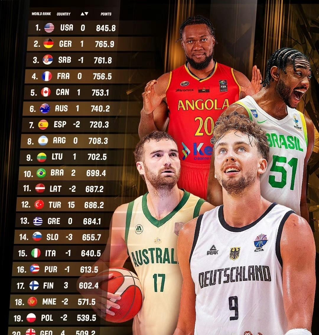 这个排名是按积分不是按真实实力。2008年中国男篮排名第九,但实际实力强于中国的最少15个国家队?