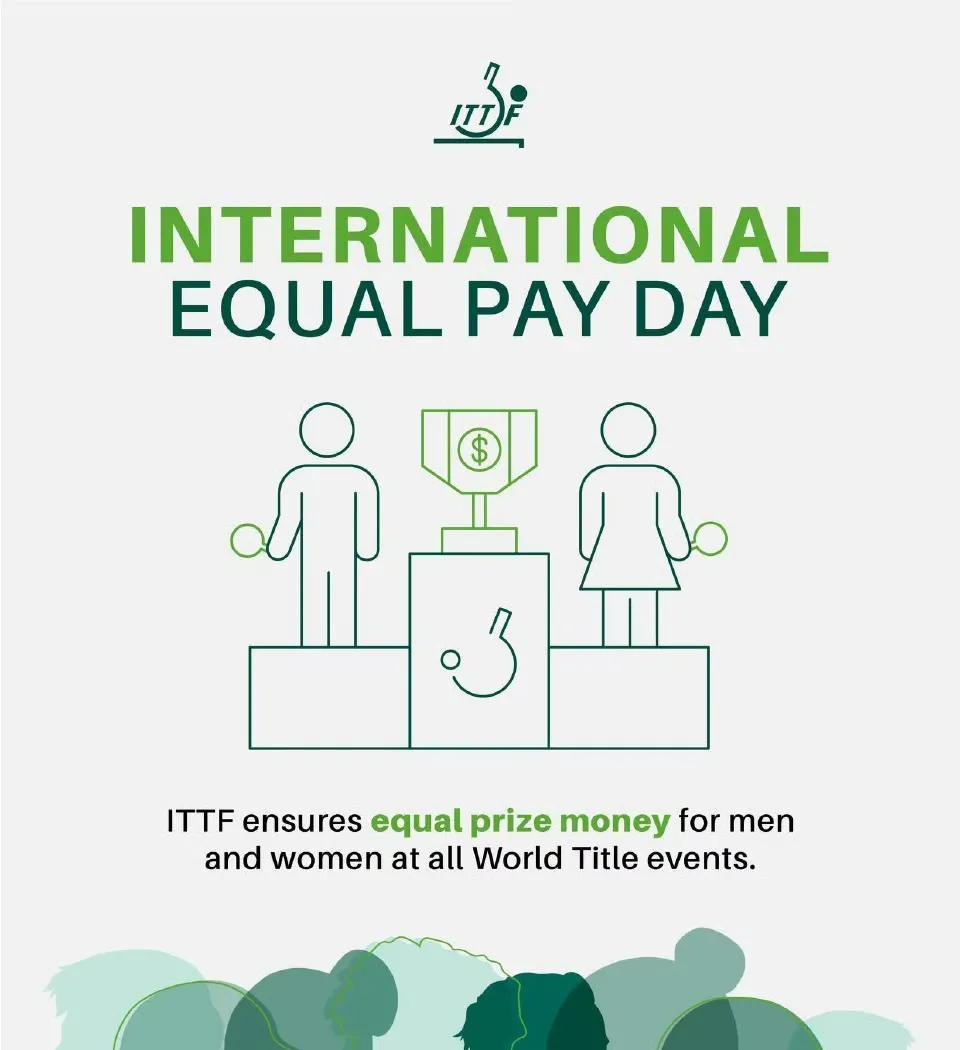 国际乒联还自豪上了。 国际乒联九月十八日特意发了一张图,意为“所有运动员同工同酬