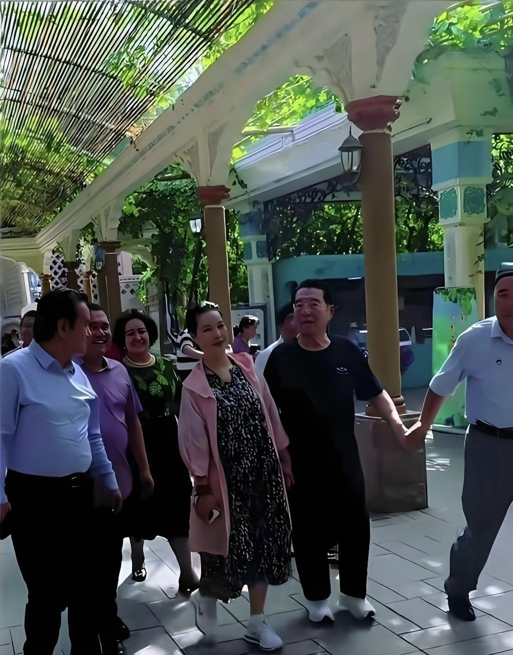 #分享城市新鲜事# 近日,著名男高音歌唱家李双江,与妻子梦鸽,一起来到新疆等地旅游。想当年,师徒两人相差27岁的婚姻,曾在社会上引起了广泛关注。 如今,已是八十六岁高龄的李双江,看起来心情大好,他身穿黑色短袖衫,脚穿白色旅游鞋,眼神略显疲惫。不过,毕竟是年逾八旬的耄耋老人了,能有这种精神状态,可以说,也是相当不错。 而年近花甲的梦鸽,身穿碎花连衣裙,容光焕发,笑容满面,精神抖擞,面对来来往往的游客,夫妻两人十指紧扣,恩爱如初,真是羡煞旁人。