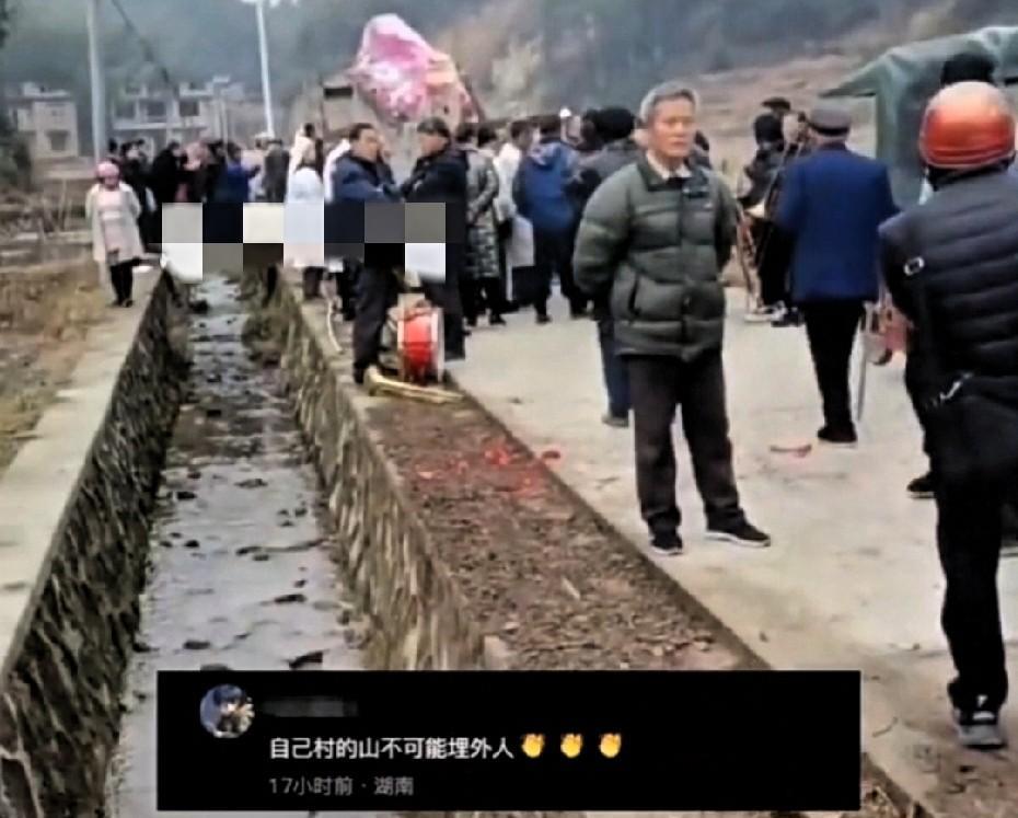 近日,湖南,网友发布,一外地人老人去世,想进山埋葬,结果本村人知道后,立马在村口
