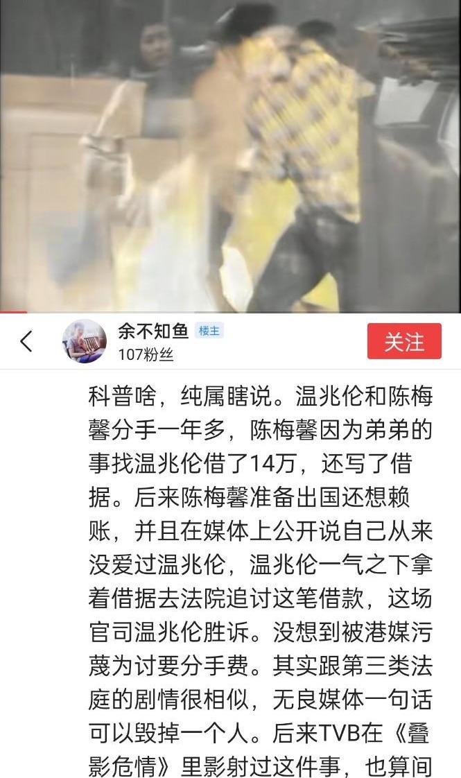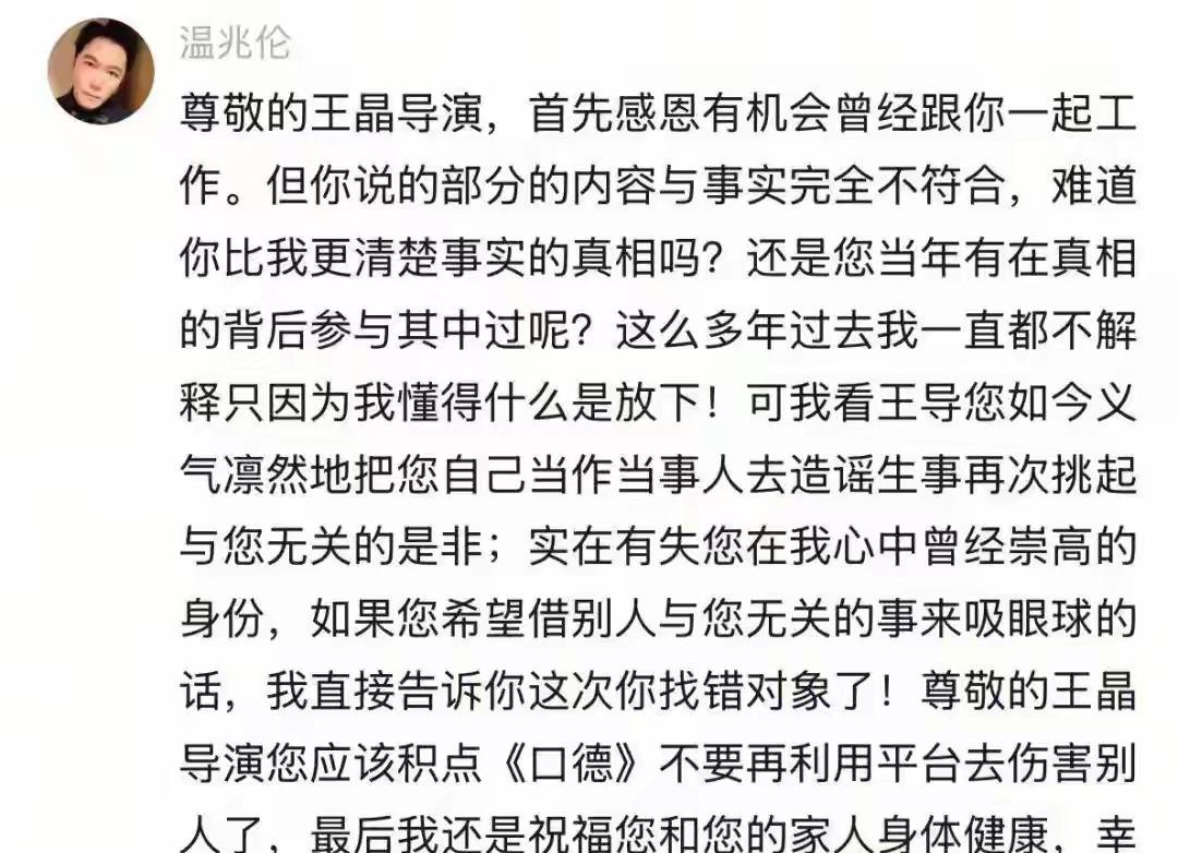 温兆伦上门讨说法,王晶大嘴巴惹上麻烦了! 导演王晶最近半年,自己拍视频节目,每天讲香港娱乐圈的八卦事件,还解密一些陈年旧事,靠这个吸引不少粉丝。 还有向太也一样。说实话,他们讲一些为人处世的大道理和年轻时候的江湖事,这也无可厚非,大家都爱看,他们也能吸粉,但是爆料人家私事就不好了! 王晶就因为爆料温兆伦女朋友的事,说温兆伦分手后,还找女朋友要分手费。结果被温兆伦找上门来了! 其实温兆伦和他前女友确实不是王晶说的那样! 真实情况是温兆伦和前女友陈梅馨分手一年多,陈梅馨因为弟弟的事找温兆伦借了14万,还写了借据。后来陈梅馨准备出国还想赖账,并且在媒体上公开说自己从来没爱过温兆伦,温兆伦一气之下拿着借据去法院追讨这笔借款,这场官司温兆伦胜诉。没想到被港媒污蔑为讨要分手费。 但是王晶只看了媒体报道,就以为是真的,然后还大肆宣扬,以讹传讹,不被骂才怪! 以后注意点吧,王晶大导演!!!