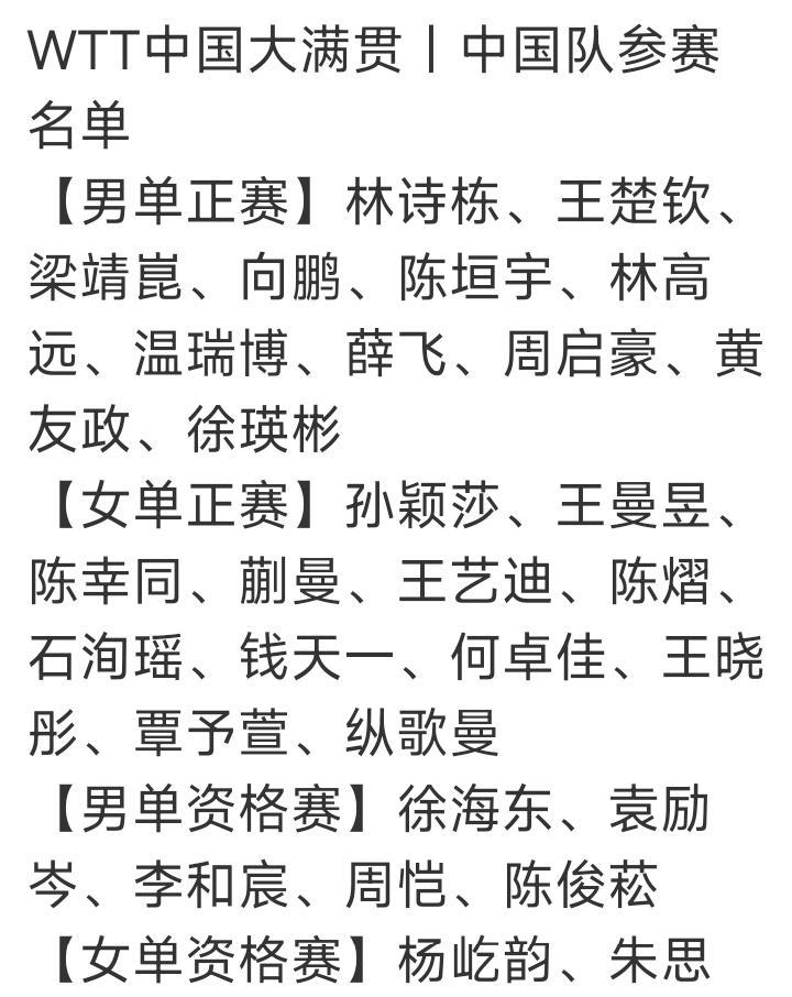 主办方外卡发下来了[笑哭]! 获得WTT中国大满贯主办方外卡的选手名单发布了,国