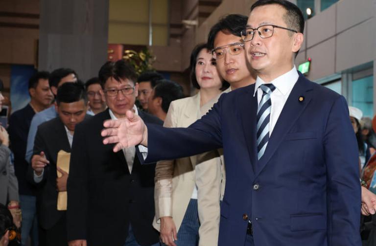 【奇葩,国民党主席选举,一位国民党民代陪着3个人现身登记】 国民党主席改选将在1