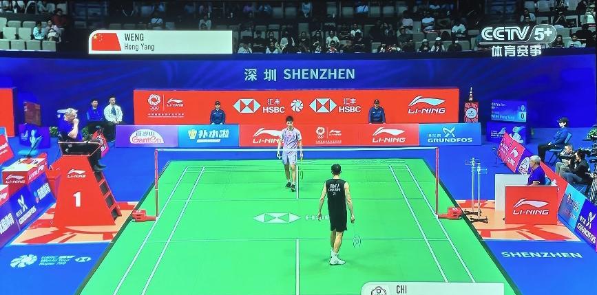 直播中国羽毛球大师赛1/4决赛。中国选手翁泓阳对阵中国台北选手齐犹人。第1局26