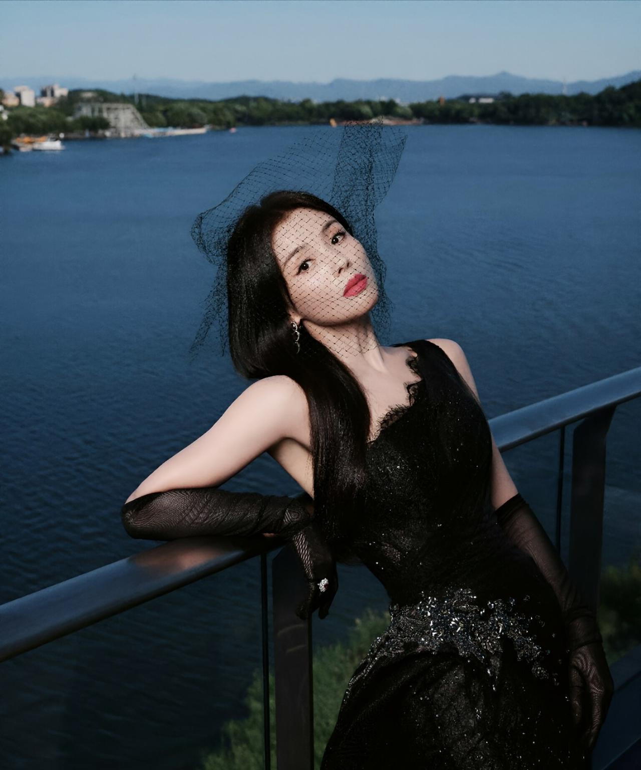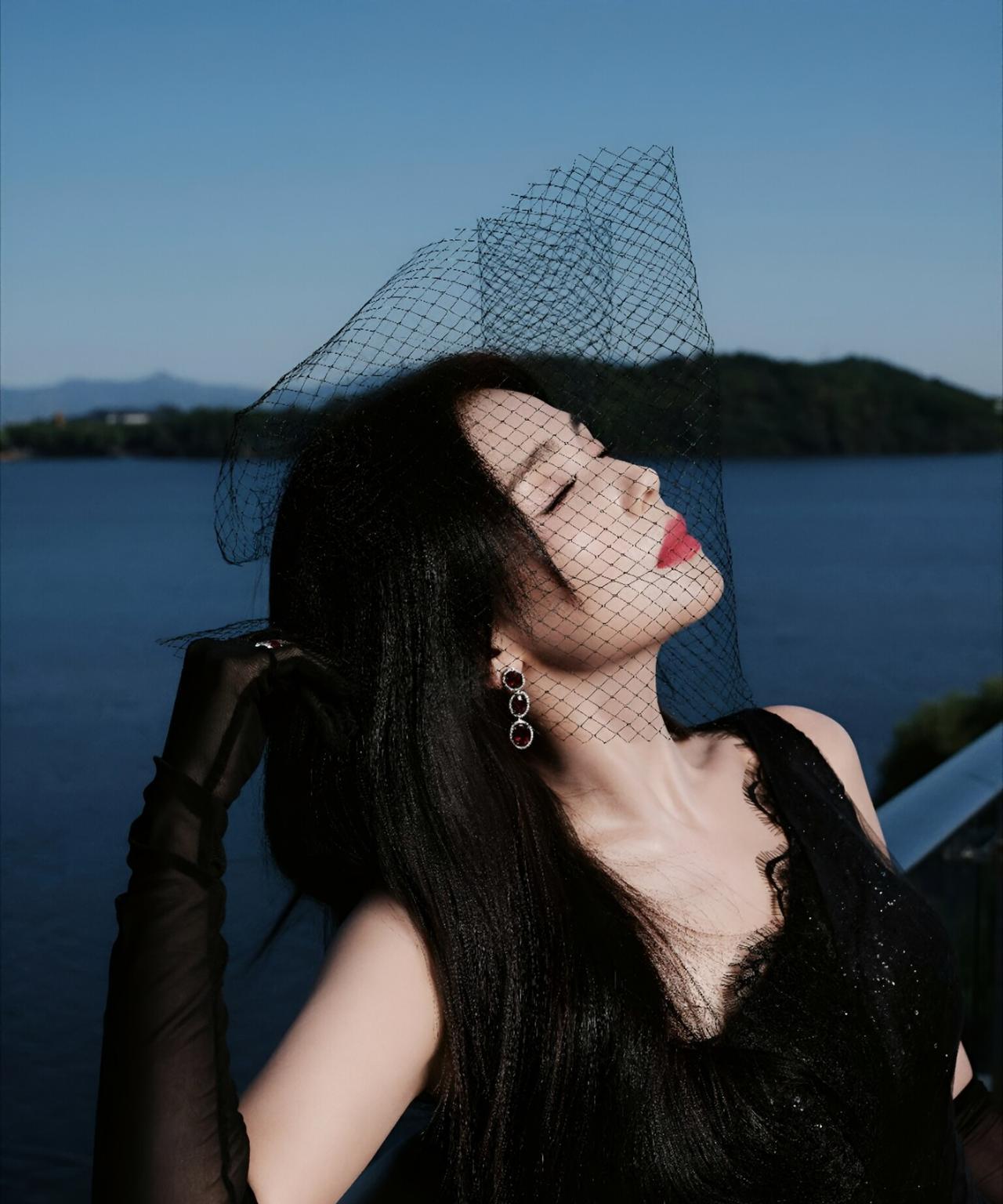 刘涛星光礼服造型释出,湖光山色间演绎复古名伶的优雅 刘涛一袭黑色星光礼服,搭配网纱手套与复古头纱,在湖光山色间尽展优雅魅惑。精致珠宝点缀其间,红唇妆容更添风情,每一个姿态都如复古电影里的名伶,将高级感与氛围感拉满,在时光的镜头下,定格成独一份的奢华浪漫。