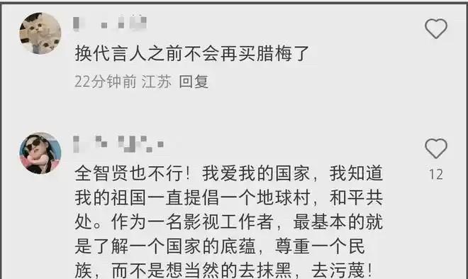 全智贤新剧《暴风圈》辱华风波持续发酵,其本人遭到最大反噬,全网自发抵制其代言,品牌方官博评论区全部沦陷,相关作品评分也下降至4分,舆论彻底失控。长期以来,全智贤吃着《来自星星的你》红利在中国营销女明星范儿,也凭借高热度拿下不少大品牌代言,比如LV、伯爵、海蓝之谜等,虽然这些都不是中国品牌,但它们主要依赖中国市场,在中国拥有的消费群众。当全智贤的台词发酵出圈后,一切都没有迂回的余地,品牌评论区充斥着抵制言论,大众态度强硬。先来看伯爵的评论区,多位网友晒出全智贤辱华台词截图,呼吁品牌方速速解约,不要再用辱华咖,让她滚。海蓝之谜的评论区也都是要求品牌方赶紧更换代言人,还拿国内明星艺人出事品牌方切割速度对比,督促品牌方速战速决,赶紧解约。而除了品牌微博评论区抵制全智贤言论外,其他平台的品牌评论区也都沦陷了,有的网友甚至用中韩双语怒斥全智贤,斥其“端起碗吃饭,放下筷子骂娘,狗崽子”,措辞中能感受到浓浓的的怒火。虽然全智贤一直是韩星好感度较高的女星,但其在中国的热度更多还是靠白月光角色和时间滤镜,粉圈受众小,所以抵制她的声音更多来自于路人,也说明路人盘已经崩塌。有不少网友督促品牌换人,不然就下架产品,或者将不再购买该品牌。而有着“塌房风向标”之称的品牌LV也再次中招(之前几位代言人都塌房),回过头看粉丝夸品牌眼光好的评论区,也颇为讽刺。全智贤的路人缘是与宋慧乔等韩星对比出来的,然而辱华大雷一切滤镜都塌了,所以“第一次看到全智贤有性缩力”的话题登上热搜,这不是怯魅,而是祛魅。韩国最爱搞上不得台面的小动作,影视作品是向全球输出的,搞意识形态这套就是故意的,别忘记背后可是迪士尼。 中国一直主张世界和平,从未好战,全智贤作为一个经验老道的演员不把控剧情台词走向,服从编剧的意志扭曲污蔑中国,就是表明了她的个人立场和态度。而且,该剧的播出时间也纯粹恶心人。据悉,《暴风圈》在2023年拍摄完毕,却偏偏选在了2025年播出,不论是“好战”的台词还是“玷污国旗”的画面,都用心险恶,很难让人忽视。 道不同不相为谋,全智贤选择了辱华的道路,那么抵制这样的艺人来中国捞钱再正常不过。在抵制艺人圈钱方面,把矛头对准商业价值最管用,尤其是像全智贤这类韩星,只有威胁到他们实际的商业利益才是有效反击。在限韩令的基础上,韩星无法在中国拍剧和播剧,但商业活动不受限制,特别是港澳地区,全智贤复出后就多次参加商业活动,备受拥趸。而今,网友们则要求限韩令锁死,不要让不尊重中国的韩国人来捞钱,更是放话任何品牌找全智贤代言都将抵制。可以说,全智贤一手好牌打得稀烂,本来可以体面老去,但偏偏要硬撞枪口,希望所有想来中国捞金的艺人都能尊重中国,不然绝对零容忍。